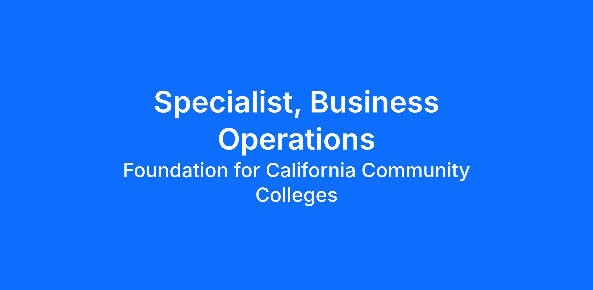We are seeking a Specialist, Business Operations to join FoundationCCC in its mission of benefiting, supporting, and enhancing the California Community Colleges—the largest and most diverse system of higher education in the nation. Together, we are building stronger communities by getting students and colleges the resources they need to succeed and expanding pathways to economic and social mobility across California. Join us as we continue this important work to uphold the value of community colleges in building a brighter future.