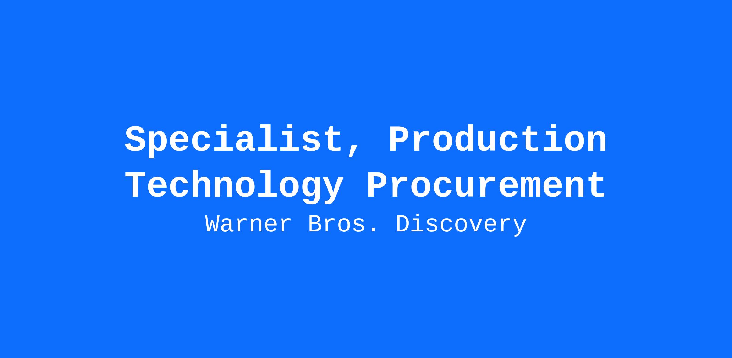 Warner Bros. Discovery (WBD) Strategic Sourcing Specialist for Production Technology Procurement will report to the Senior Manager, Production Technology Procurement.