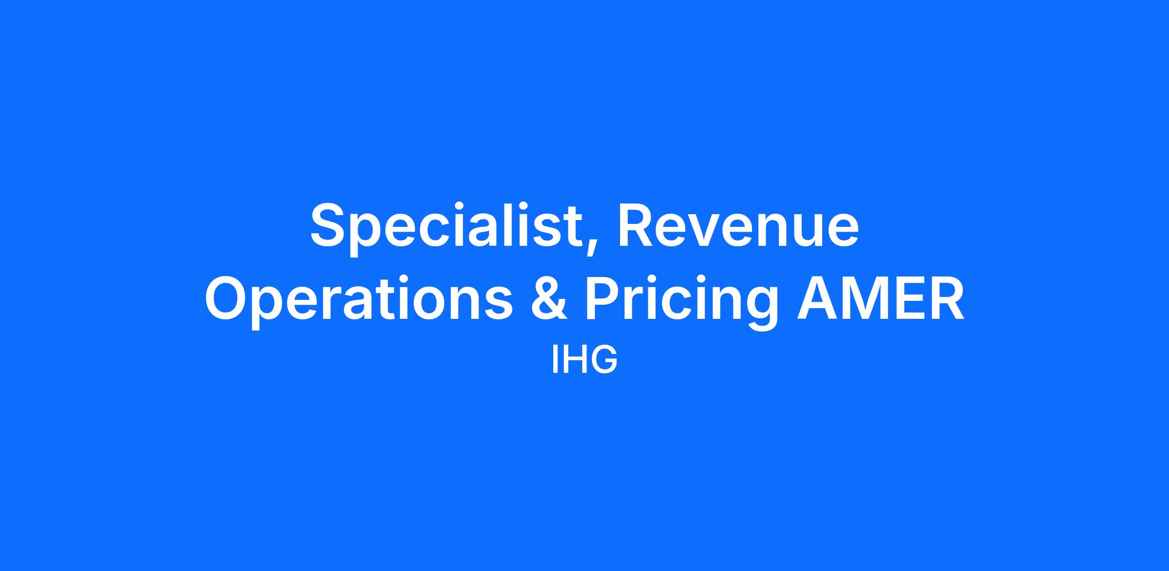The Specialist, Revenue Operations & Pricing AMER, is an essential part of the Revenue Analytics team. You will be responsible for deriving data-driven insights to help guide revenue strategy for all hotels in the Americas.