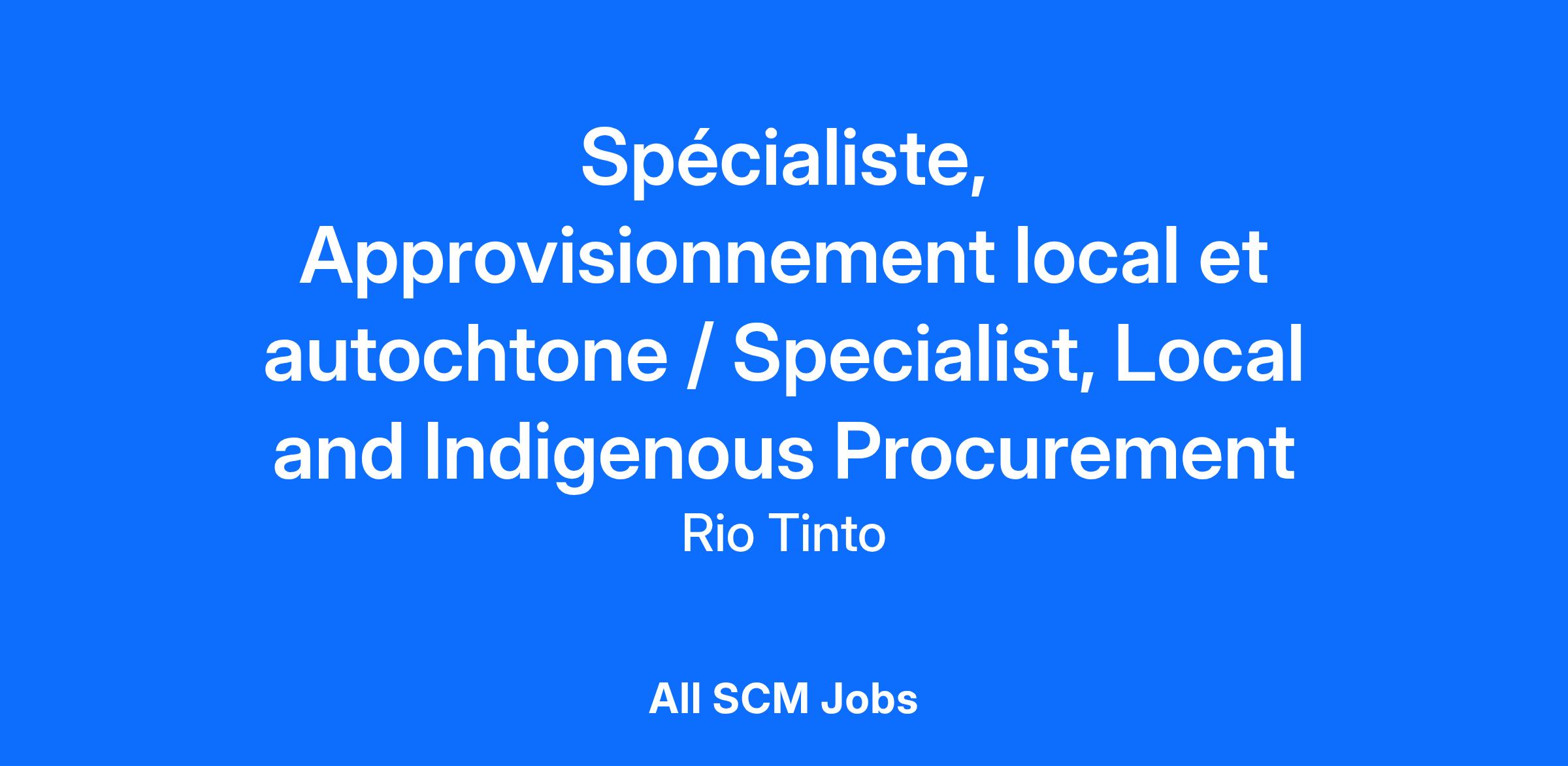 We are looking for a secondment for Specialist, Local and Indigenous Procurement for our North American procurement organization based in Montreal, Qc. The Specialist will oversee leading and implementing an engaging local and Indigenous procurement program within the North American procurement function. Partnership with our local and Indigenous suppliers is critical to our business resilience and plays a key role in our long-term success, securing our license to operate.