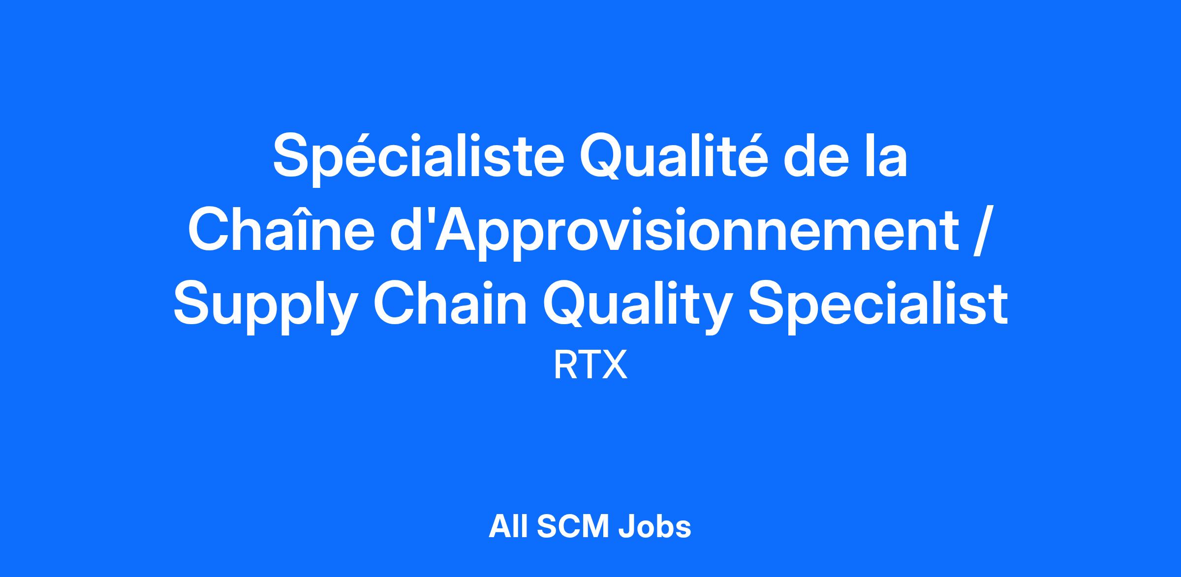 LOC13052 1000 Boul Marie Victorin,Longueuil,Quebec,J4G 1A1,CanadaTitre du poste: Spécialiste Qualité de la Chaîne d'Approvisionnement