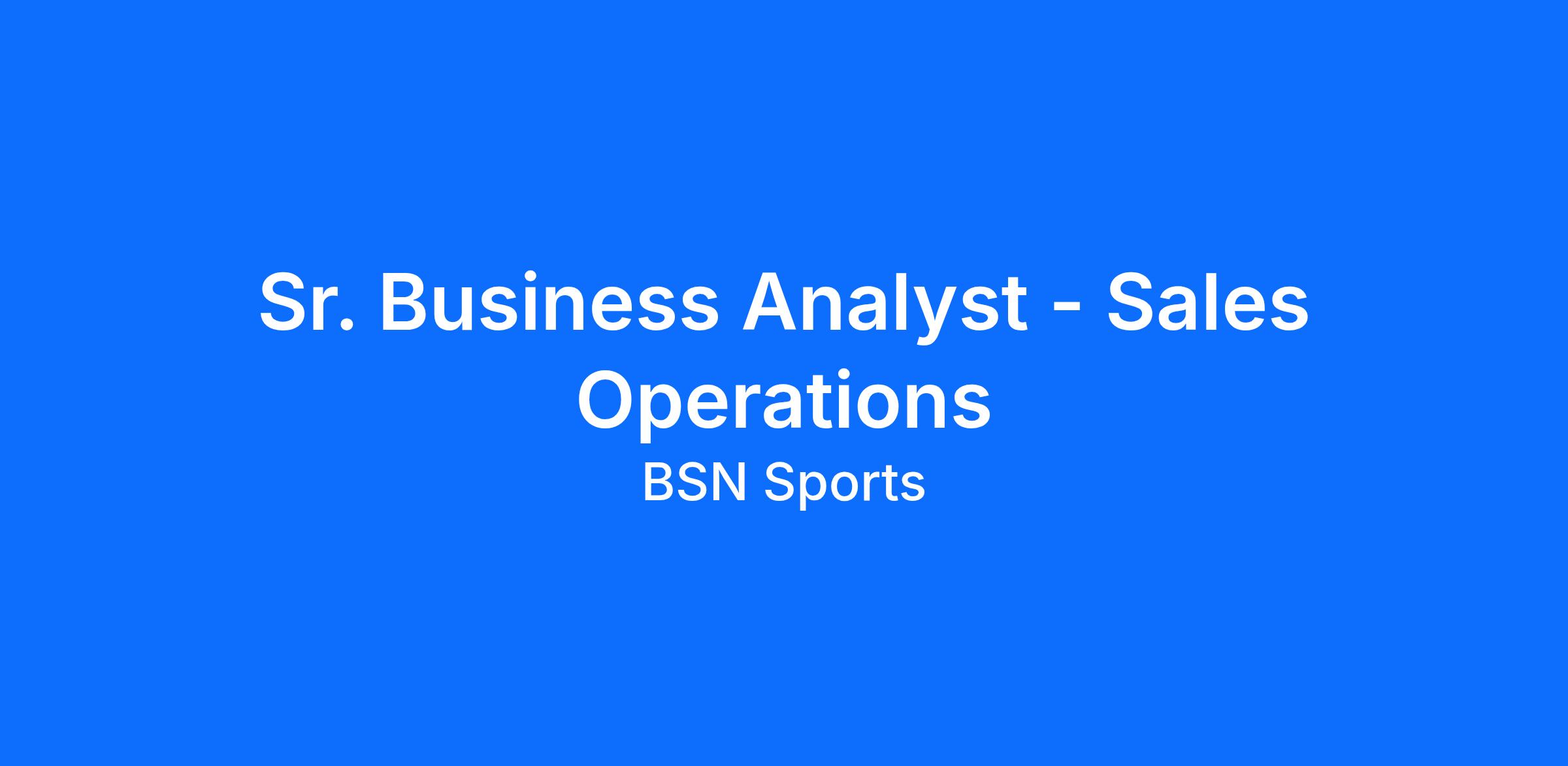 BSN SPORTS is hiring a Sr. Business Analyst - Sales Ops to join our team at our Headquarters in Farmers Branch, TX and serve in one of the most dynamic industries in the world: sports. As a part of the BSN Team, your work will have an impact on so many individuals from youth leagues and schools to corporate offices by increasing pride and community spirit.