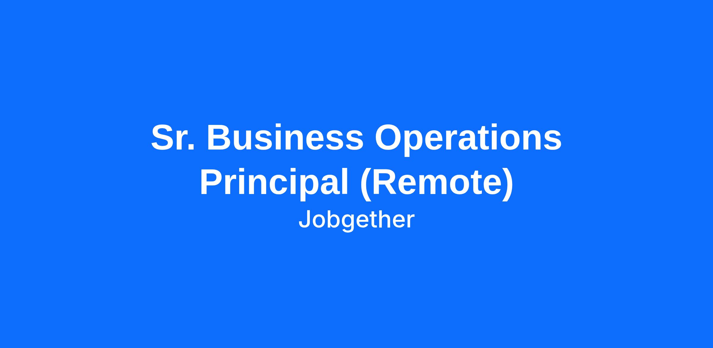Sr. Business Operations Principal (Remote)