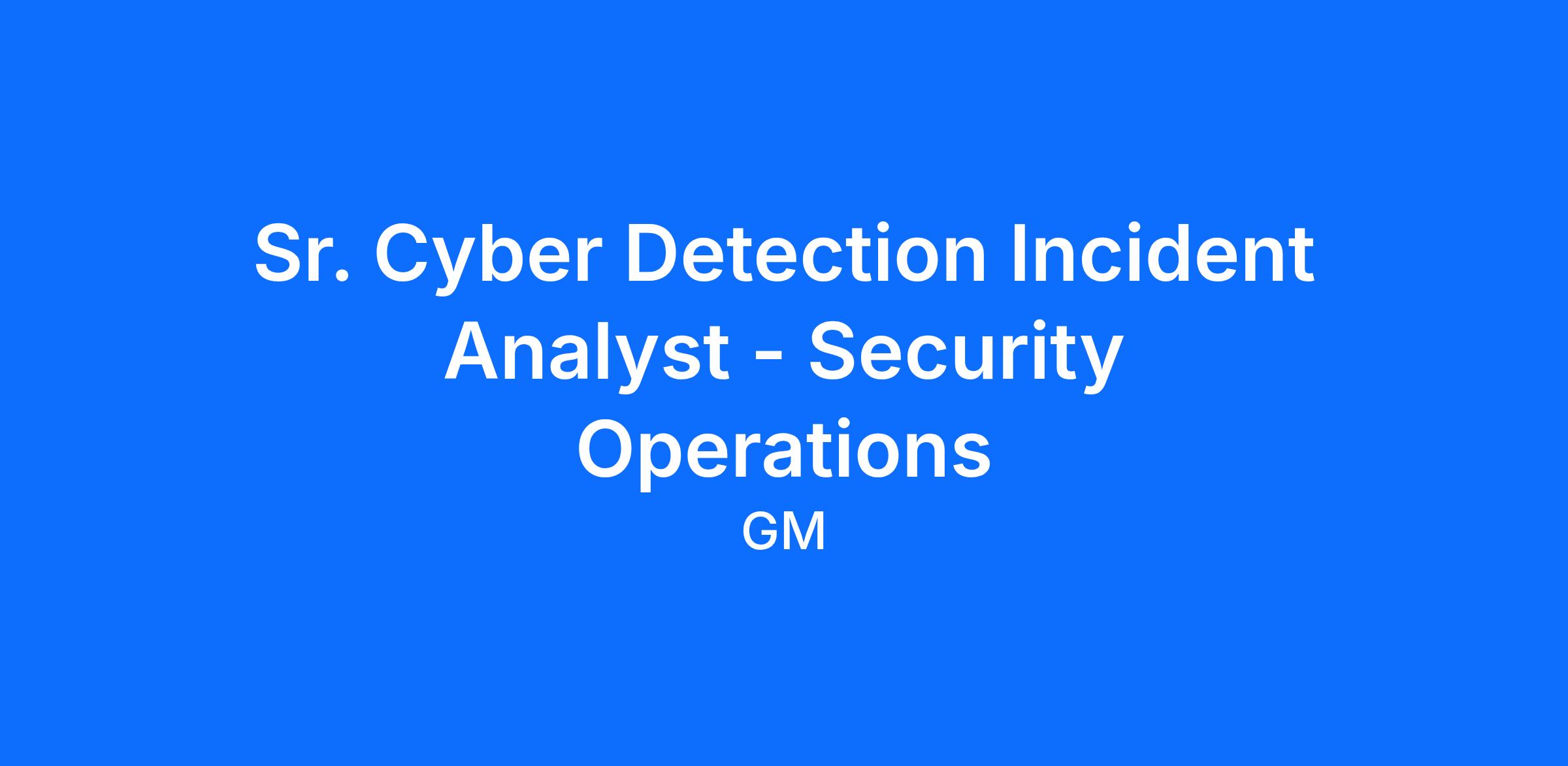 As a Cyber Detection Incident Analyst on GM’s Security Operations team, you will play a critical role in strengthening the organization’s ability to detect and analyze to advanced cyber threats across a global, hybrid enterprise. You will leverage expertise across endpoint, network, cloud, identity, and application detection technologies to identify malicious activity, improve alert fidelity, and enhance the platforms and workflows that drive GM’s cyber detection mission.