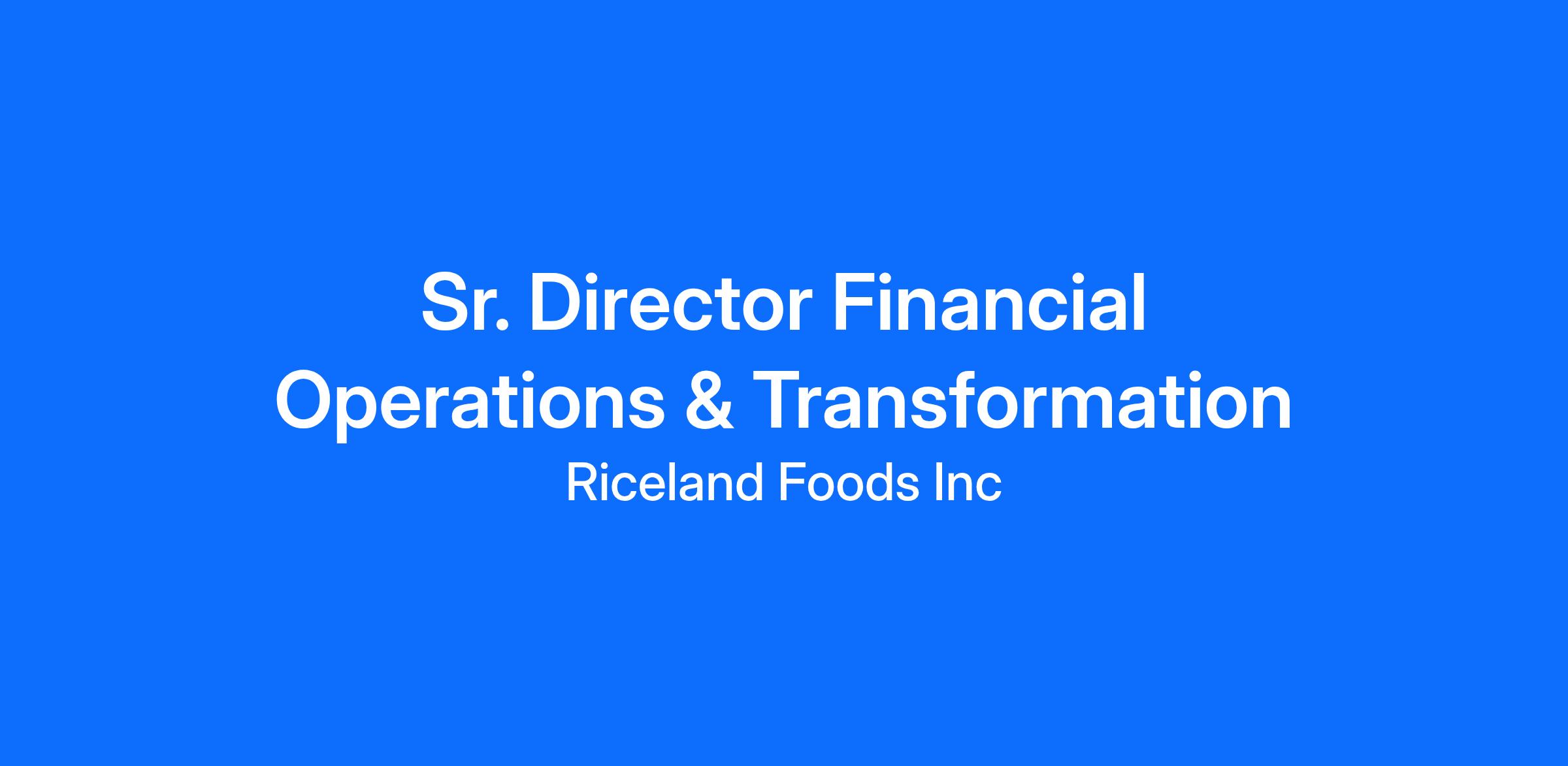 Riceland Foods is looking for a Sr. Director of Financial Operations & Transformation. The Sr. Director of Financial Operations & Transformation serves as a strategic partner to the CFO and a cross‑functional leader supporting Accounting, FP&A, Operations, Inventory Management, IT, and other departments. This role is responsible for strengthening financial operations with a primary focus on inventory management, process optimization, continuous improvement, and documentation of accounting and closing process workflows.