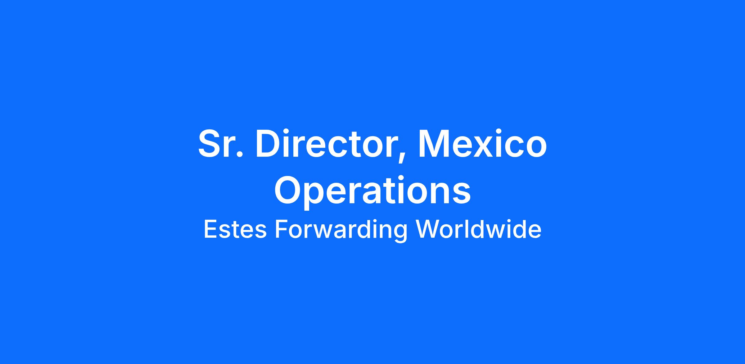 The Sr. Director, Mexico Operations will report directly to the SVP, International Operations. This position will oversee target trade lanes between Mexico, United States, and other EFW trading partners globally to and from Mexico. The position will also lead EFW Mexico operations, EFW Mexico sales personnel, and focus on Mexico business development opportunities along with marketing strategies. The Sr. Director, Mexico Operations will visit key U.S. and Mexican markets to analyze local operations and local conditions. The Sr. Director, Mexico Operations will partner with the EFW sales department to win new business and communicate with our operation leaders on Mexican market conditions, business observations, and customer feedback. Finally, the position will develop and maintain vendor relationships to increase capacity to accommodate sales within this trade lane.