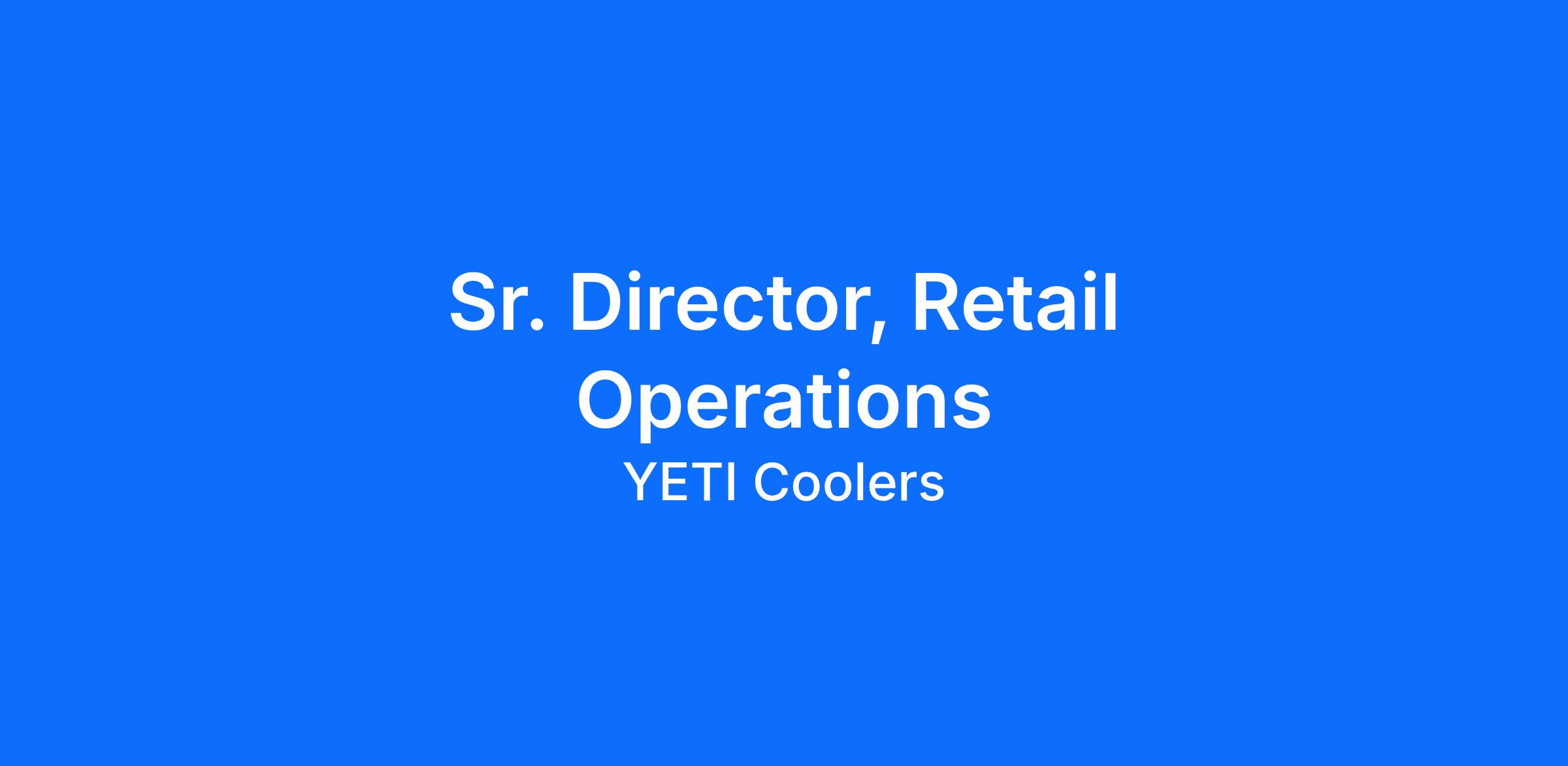 YETI is looking for a Senior Director, Retail Stores to lead the full retail strategy and commercial performance of our growing fleet of YETI stores across North America. Reporting to the SVP, Americas, this leader is accountable for creating an elevated, industry-leading consumer experience that drives revenue, profitability, and brand advocacy across every store.