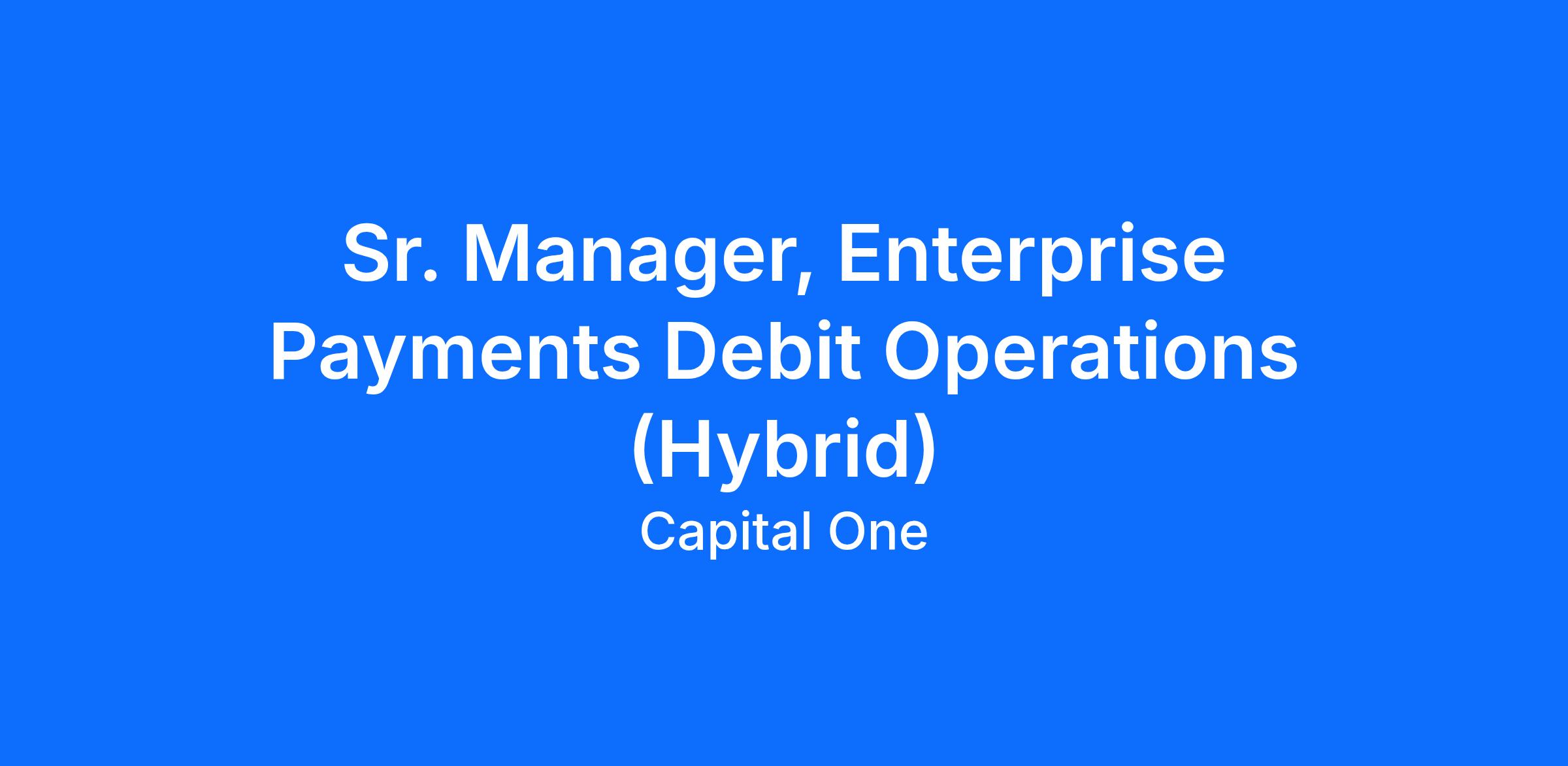 The Enterprise Payments (EP) Debit Operations team is seeking a dynamic Senior Manager to lead the Debit Networks & Processors function at Capital One. The team sits within the Retail Bank line of business and is tasked with developing oversight of end-to-end payments strategy, operations, and risk management for Debit payment types. We establish accountabilities across the Debit payments ecosystem, serve as an advisor for stakeholders, and monitor Debit payment risks and controls end-to-end across the Debit framework.