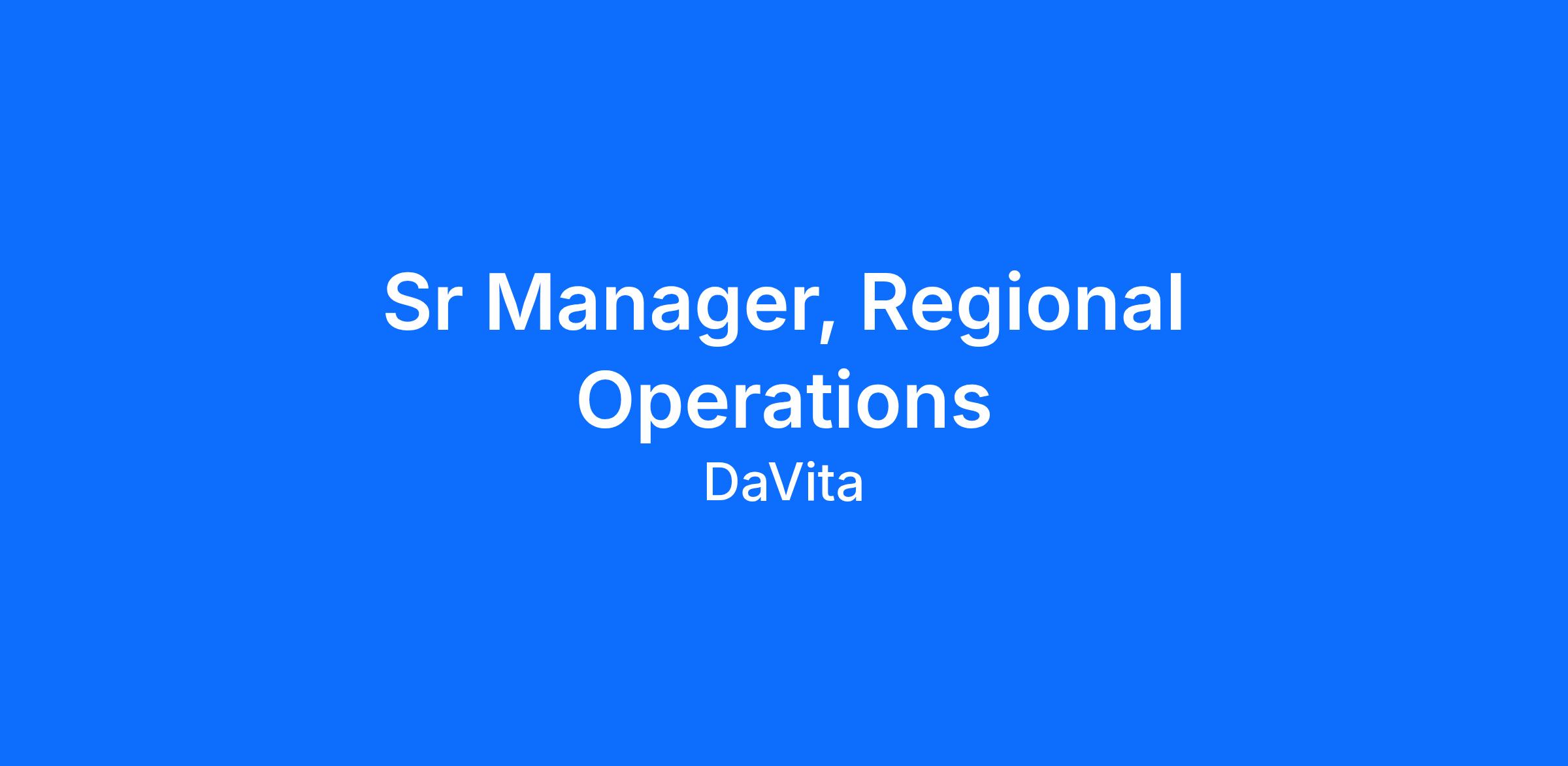 Sound like you? Then you might be a great fit for Sr. Manager, Regional Operations with DaVita.