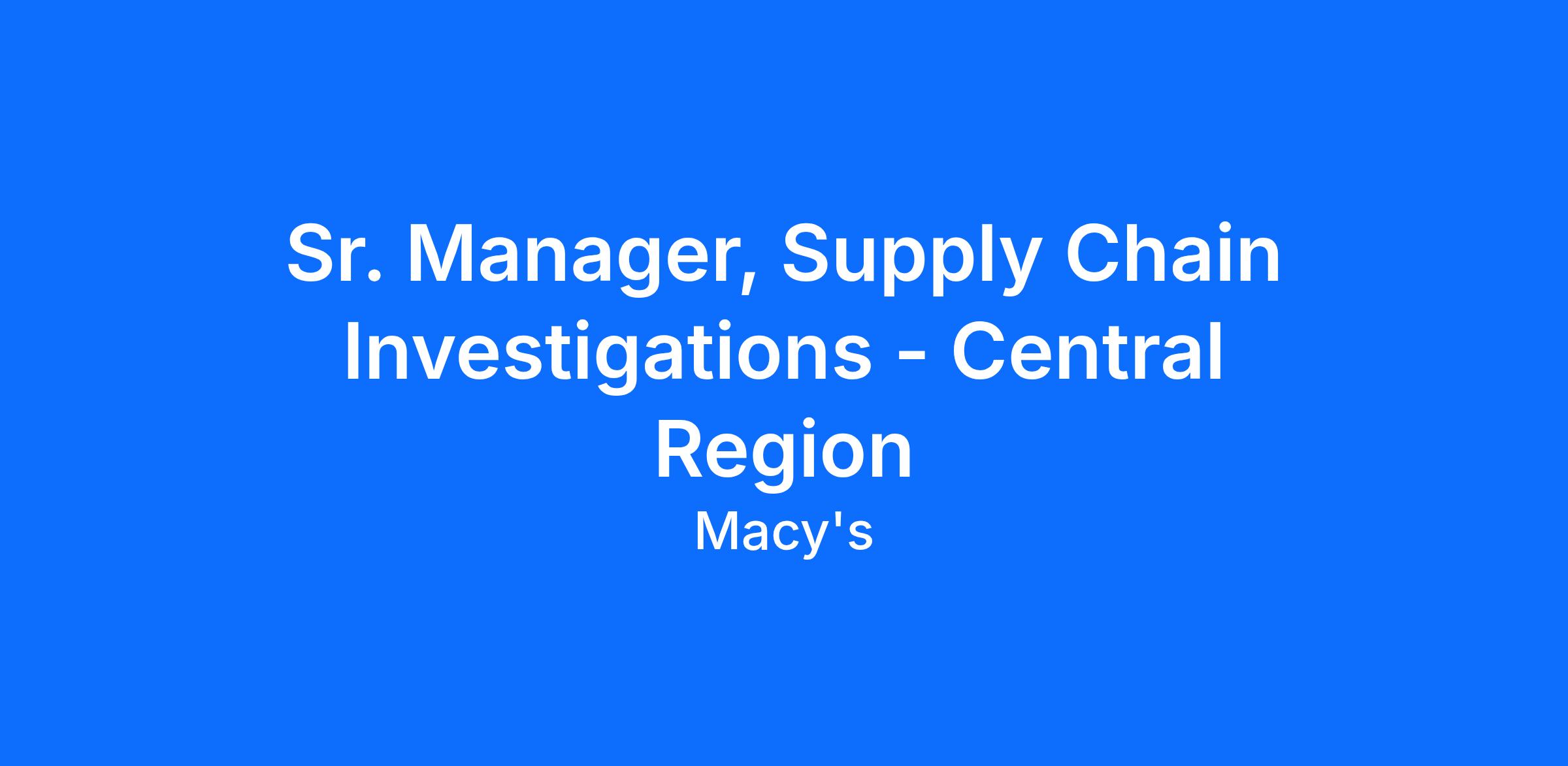 Sr. Manager, Supply Chain Investigations - Central Region