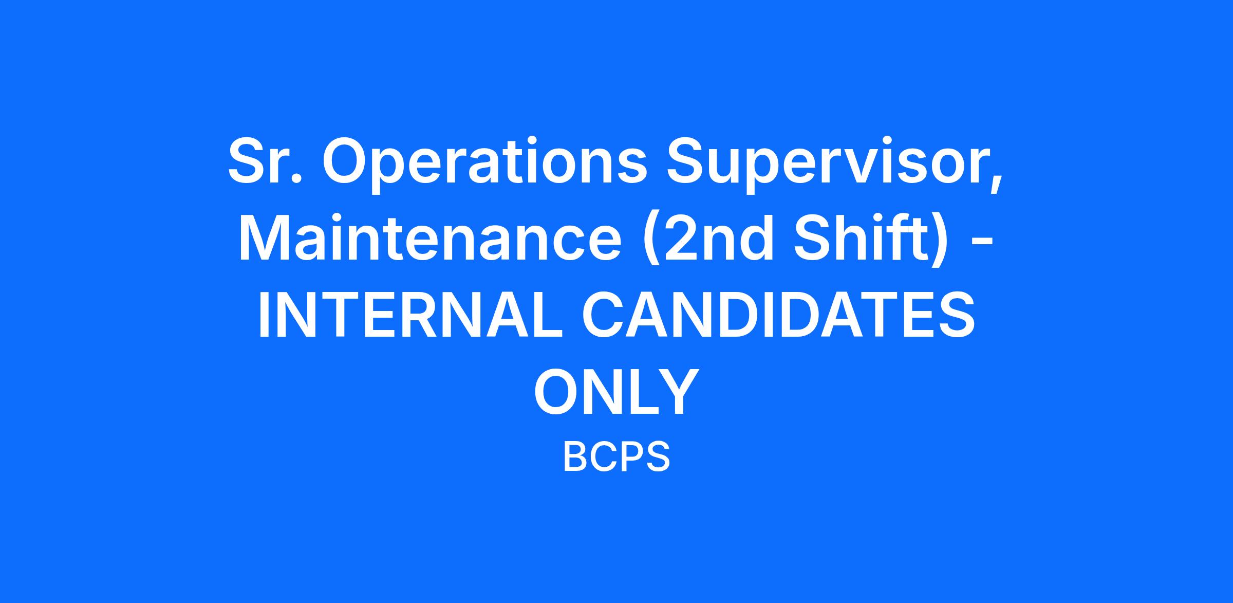INTERNAL CANDIDATES ONLY - Manages the day-to-day operations of 2nd shift for the Office of Maintenance across trades. Supervises Maintenance professional, licensed and unlicensed staff, and others. Provides advice and guidance to management regarding maintenance matters. Performs other duties as assigned.