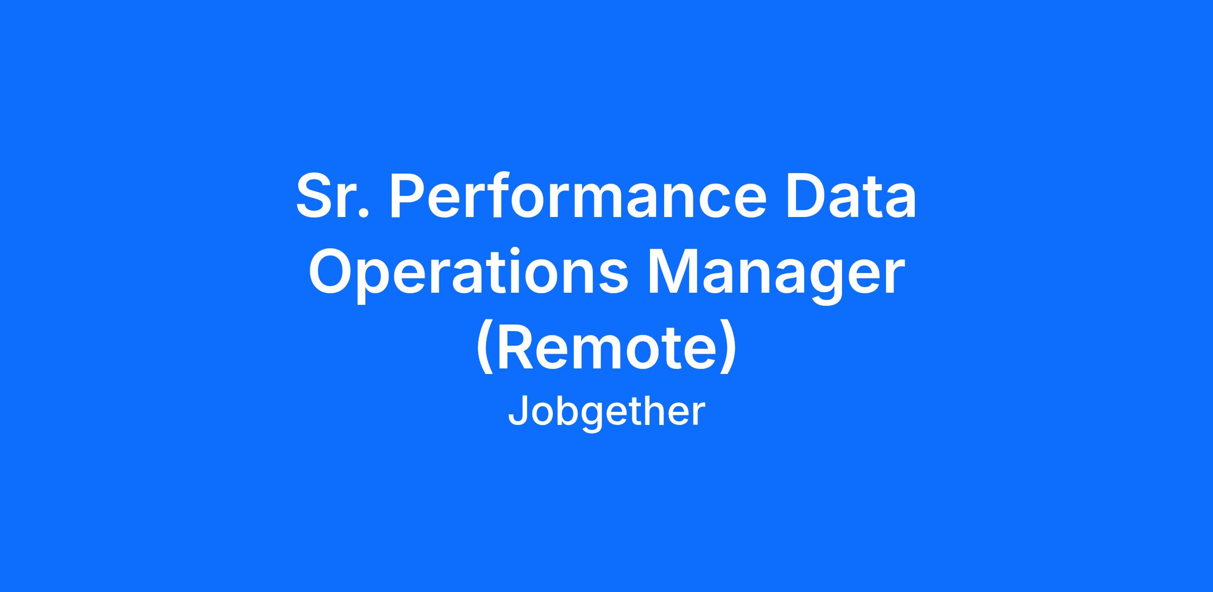 Sr. Performance Data Operations Manager (Remote)