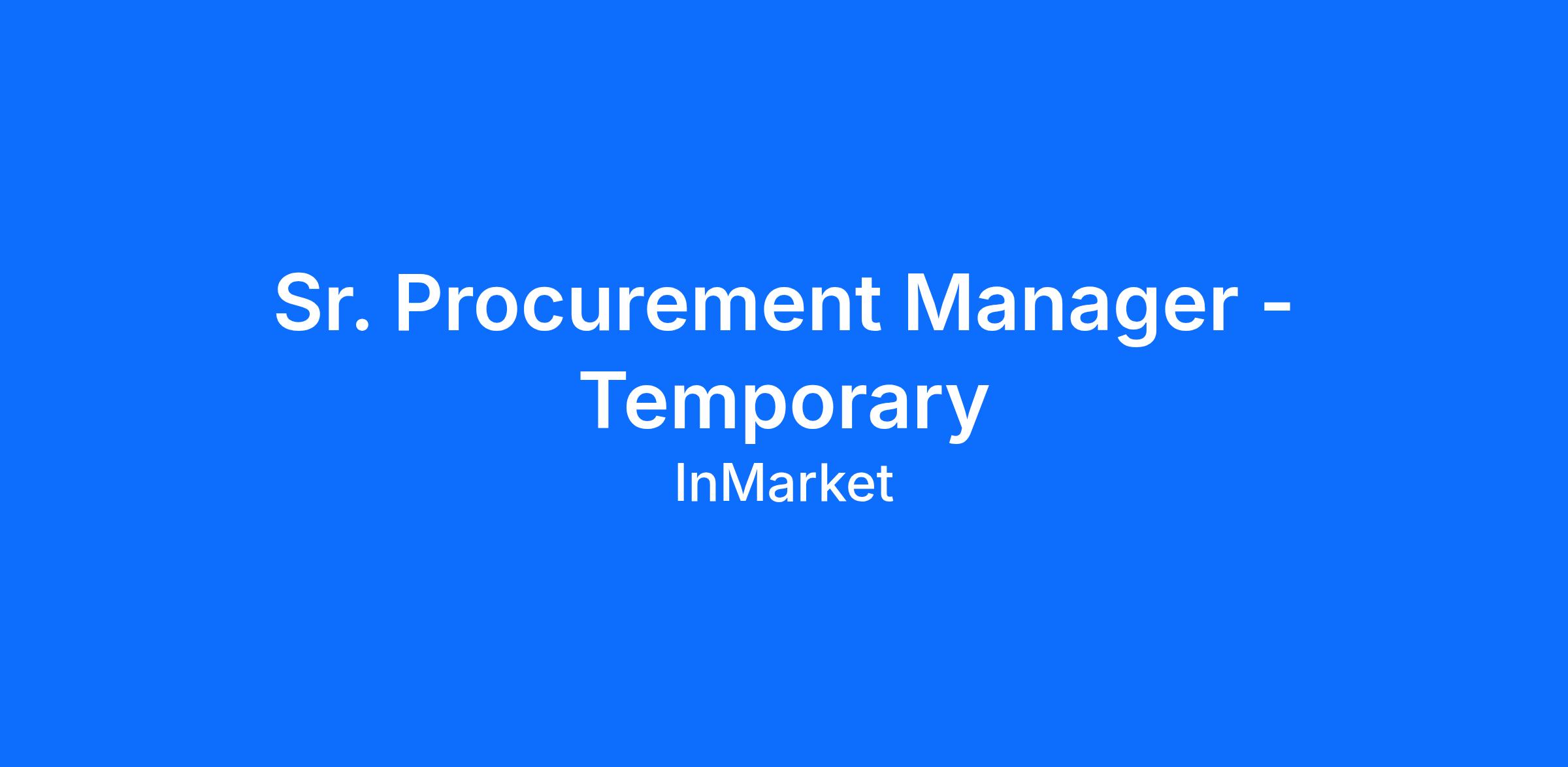 Job Description: Sr. Procurement Manager - Temporary