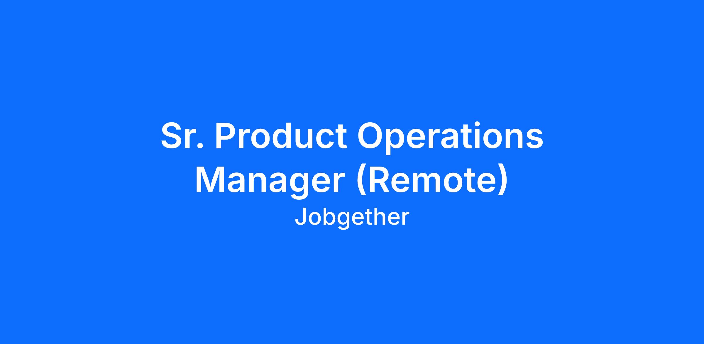 Sr. Product Operations Manager (Remote)