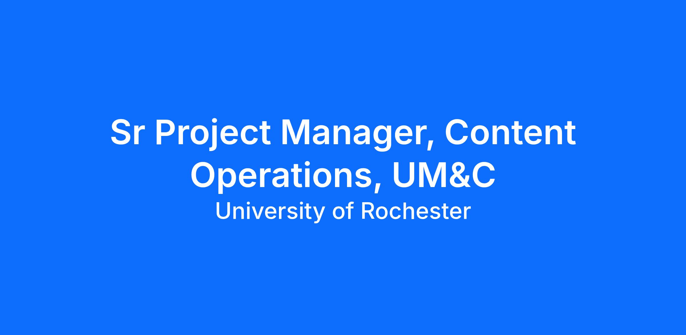 Serves as a key member of the Content Team within University Marketing and Communications (UM&C), reporting to the Director of Content. This role is responsible for leading and managing complex, large-scale, multi-channel content initiatives for the University’s integrated content strategies and flagship channels—including Rochester Review magazine, the News Center website, social media, and marketing campaigns.