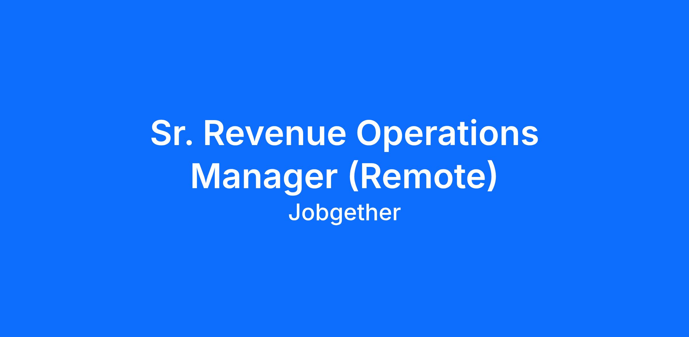 Sr. Revenue Operations Manager (Remote)