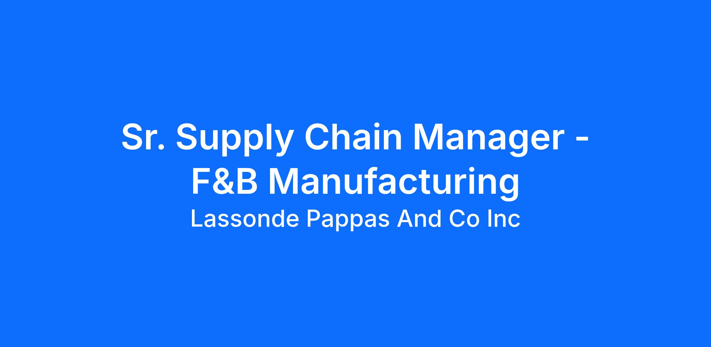 Sr. Supply Chain Manager - F&B Manufacturing