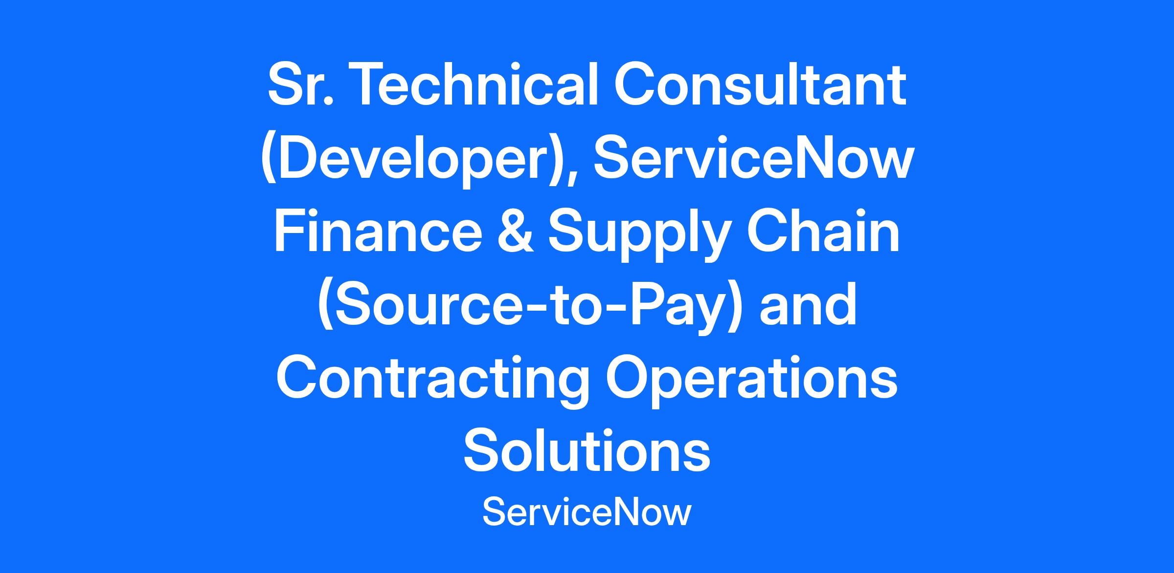 Sr. Technical Consultant (Developer), ServiceNow Finance & Supply Chain (Source-to-Pay) and Contracting Operations Solutions