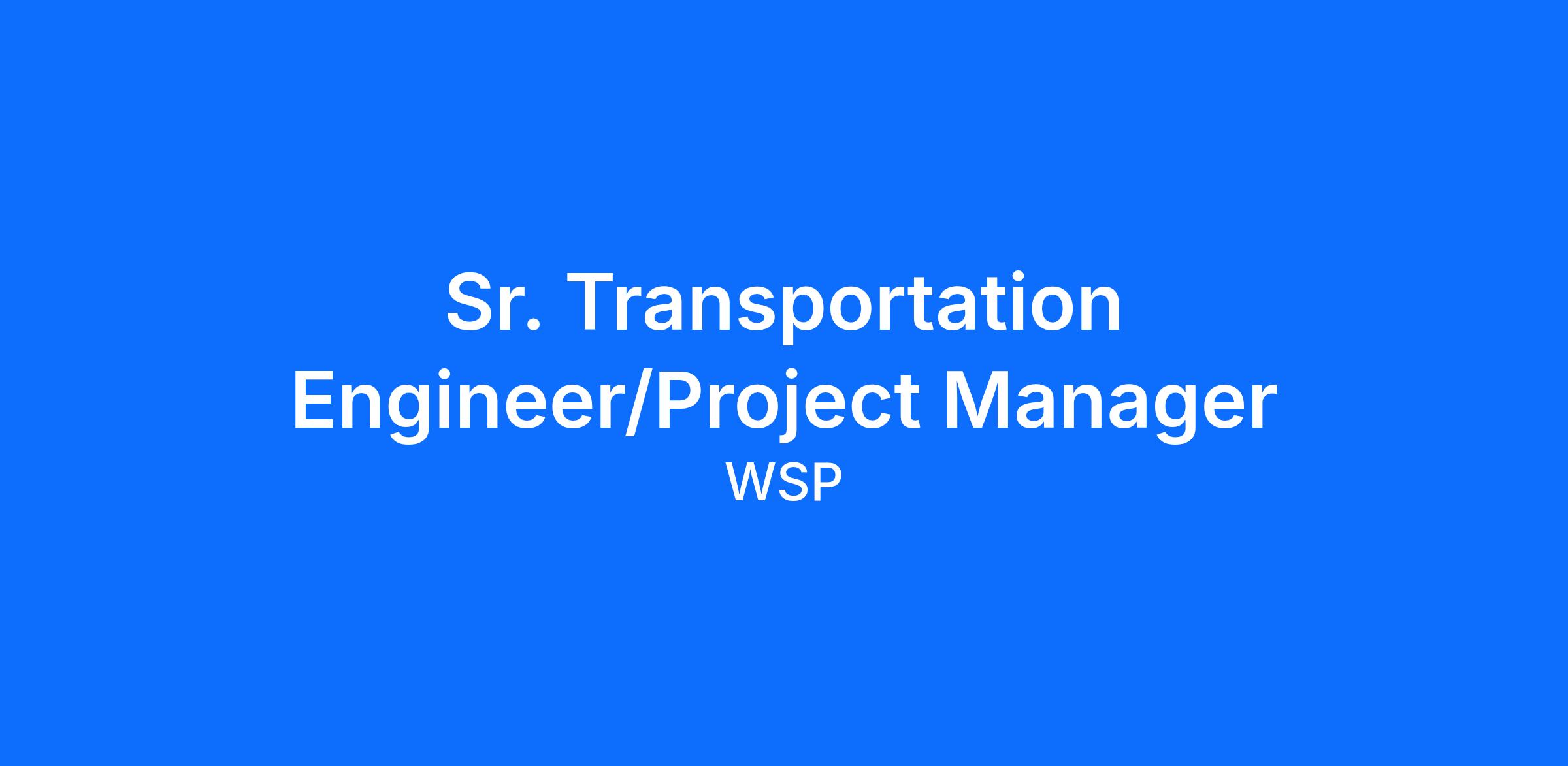 WSP is seeking a Sr. Transportation Project Manager to join our Salt Lake City Transportation Team. Be involved in projects with our Civil Engineering Team and be a part of a growing organization that meets our client's objectives and solves their challenges.