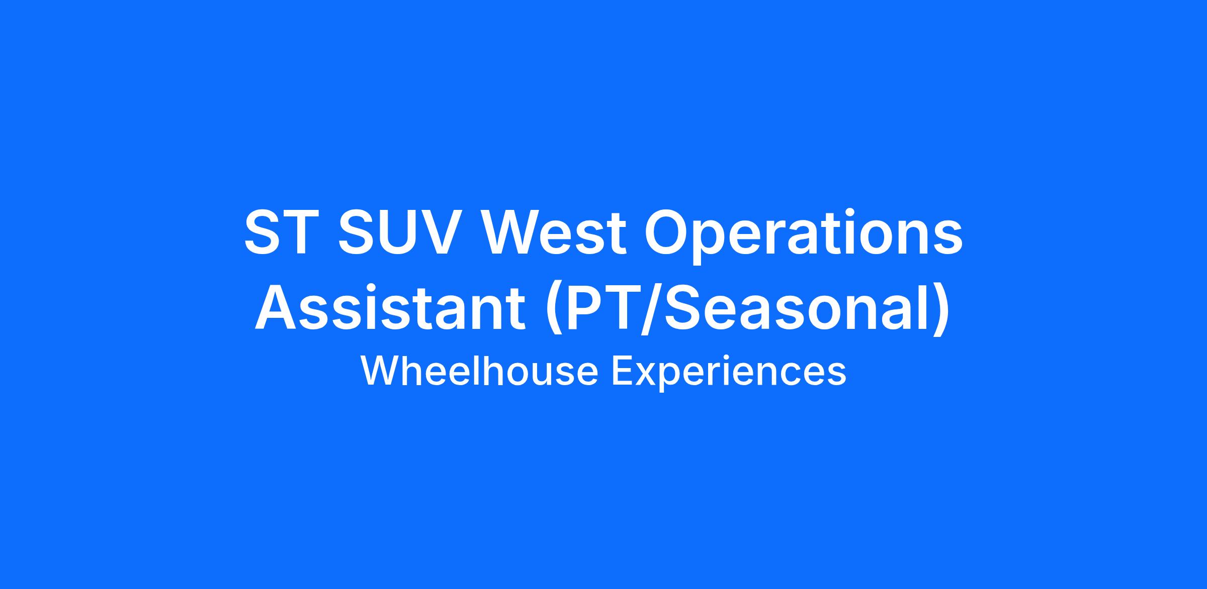 Job Summary: The Seasonal Part-Time Operations Assistant is an integral part of operations for the ST SUV Experience. This position is expected to last from mid-May to mid-November. This person takes care of numerous tasks critical to the effective running of Wheelhouse Experiences programs, including program preparation, event site setup/teardown, working program exercises, program hosting, errand running, and assisting with giveaway operations. They will champion the company’s mission and vision while modeling the company’s values.