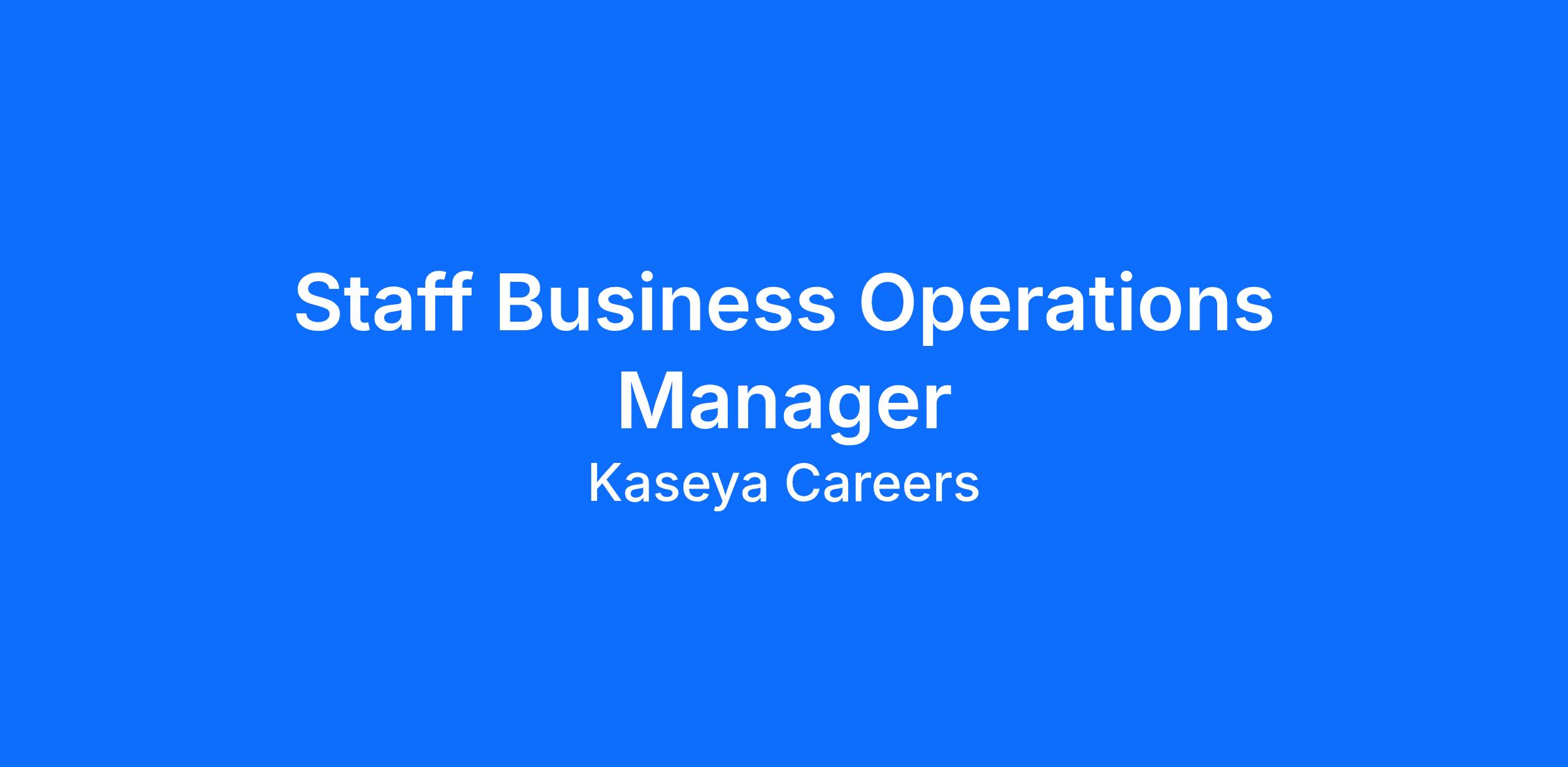 Join the dynamic team at Kaseya as a Staff Business Operations Manager. You will play a pivotal role in driving innovation efficiency, and excellence across our cutting-edges. As an expert in cross-functional collaboration, you will be at the forefront of innovating ideas into successful realities. If you are a strategic thinker, problem solver, and advocate for operational excellence in product management, sign up for this exciting role today.