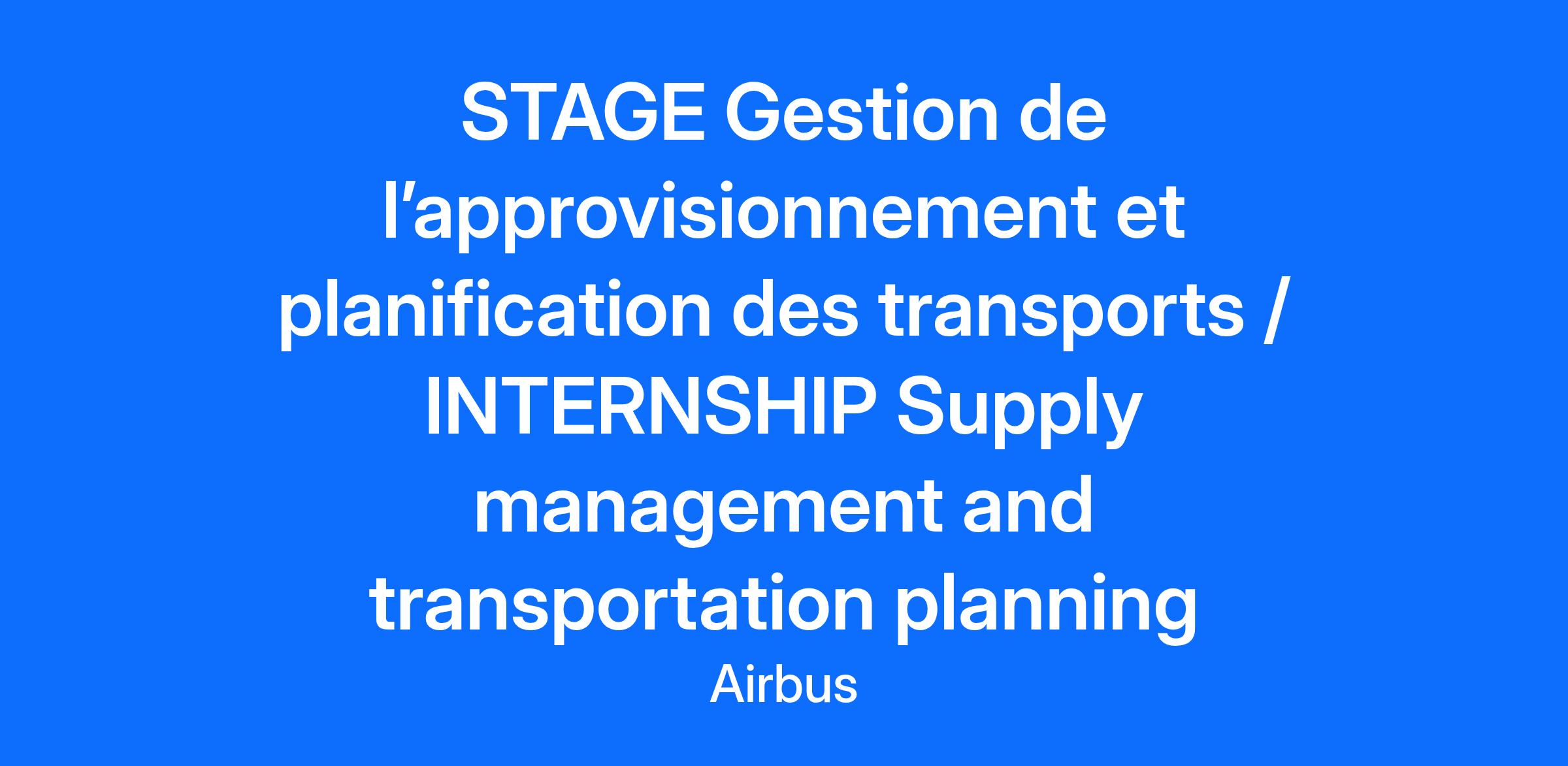 TITRE : STAGE Gestion de l’approvisionnement et planification des transports / INTERNSHIP Supply management and transportation planning