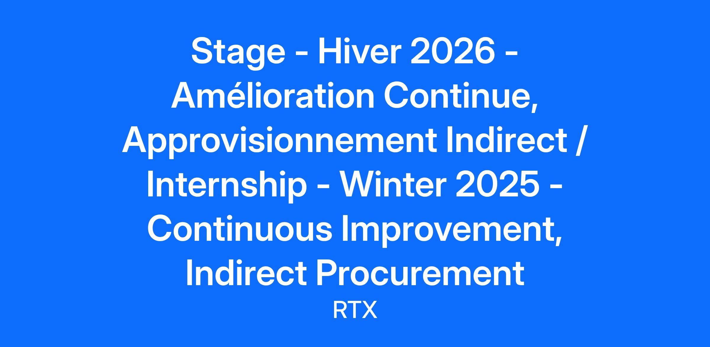 Stagiaire- Amélioration continue , Approvisionnement Indirect