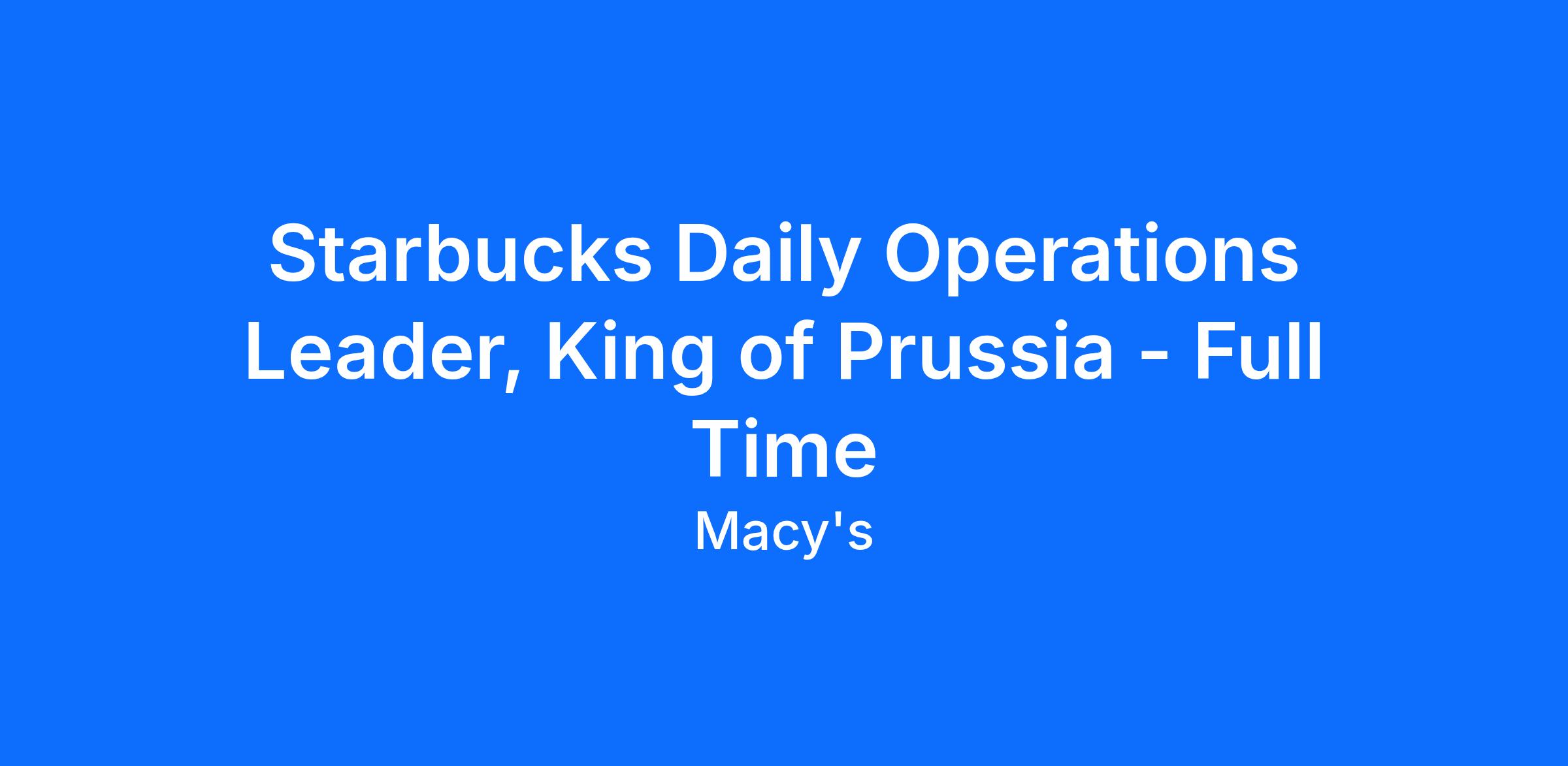 Starbucks Daily Operations Leader, King of Prussia - Full Time