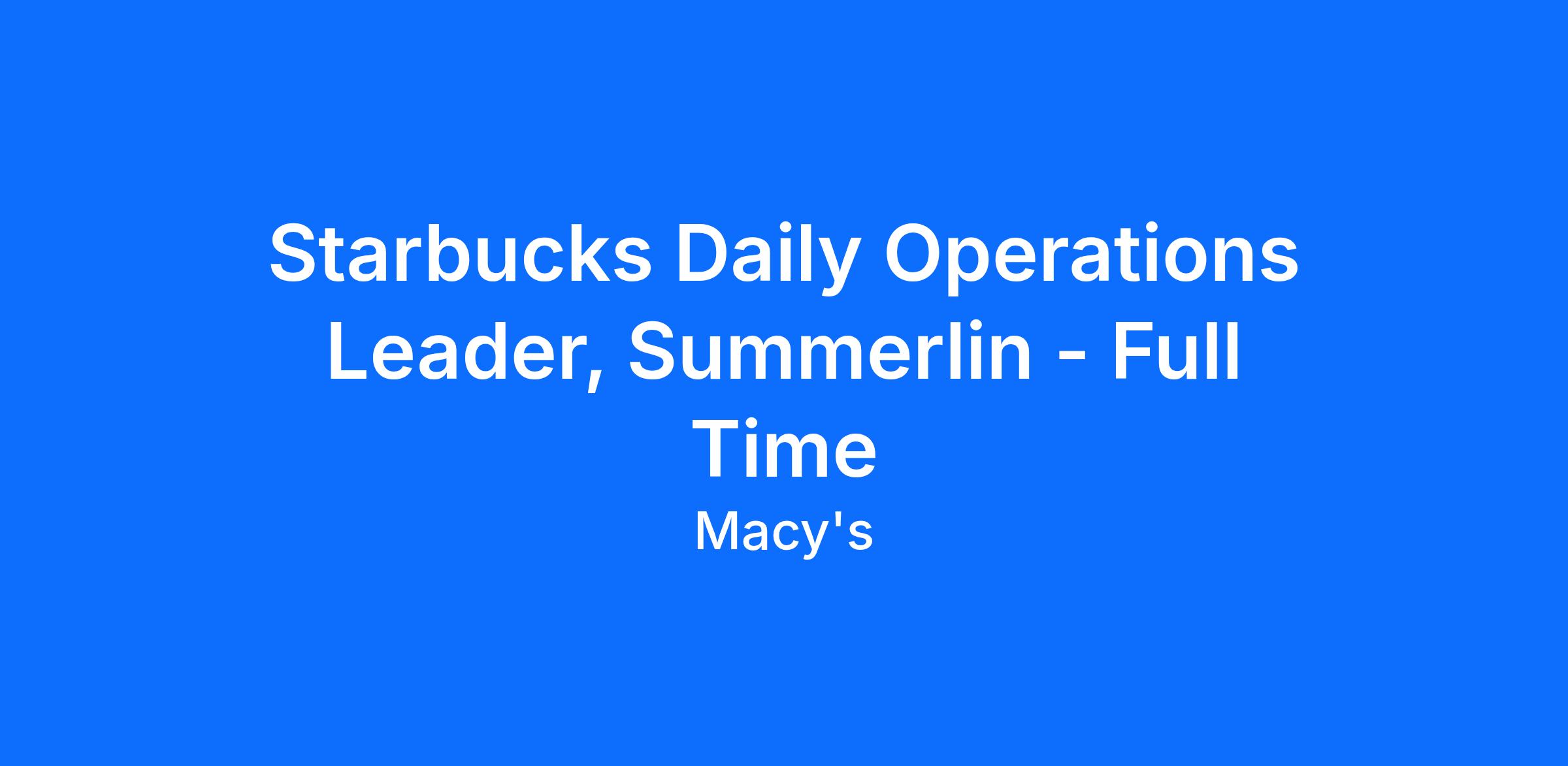 The Starbucks Supervisor directs daily operations of the licensed Starbucks café inside Macy’s, ensuring an efficient, professional, safe, and profitable operation while upholding Starbucks brand standards and Macy’s Foods Division expectations. The Supervisor works alongside Baristas to deliver quality customer service and expertly crafted beverages, modeling the operational standards that define the Starbucks Experience.