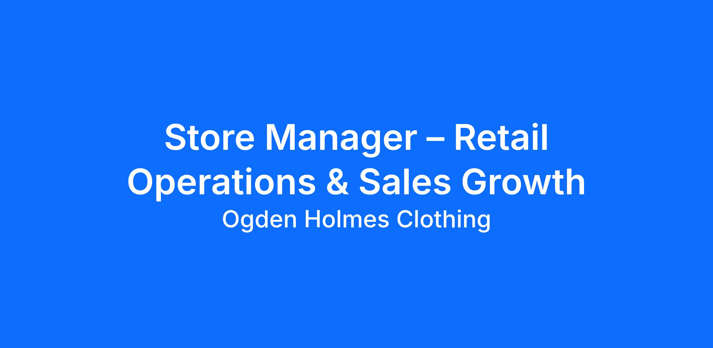 Store Manager – Retail Operations & Sales Growth