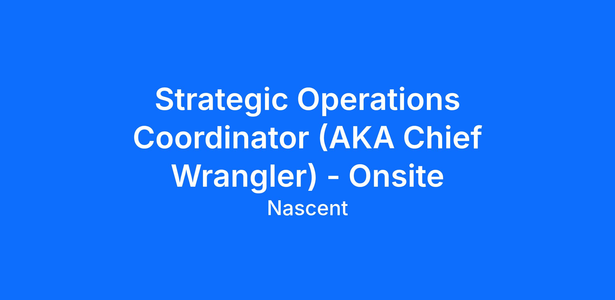 As a Strategic Operations Coordinator at Nascent, you're the human interface building and managing a fleet of agents to automate operations, project management, and execution — so you can focus on the coordination, judgment, and momentum that only humans can deliver. You'll run meetings, facilitate strategy sessions, support technical projects and product roadmaps, keep teams aligned and unblocked, and ensure execution stays sharp. You'll turn ambiguity into digital infrastructure, translate strategy into execution pathways, and own the operating layer that keeps everything moving. You're not a background operator — you're a force multiplier who makes high-performers even more effective.