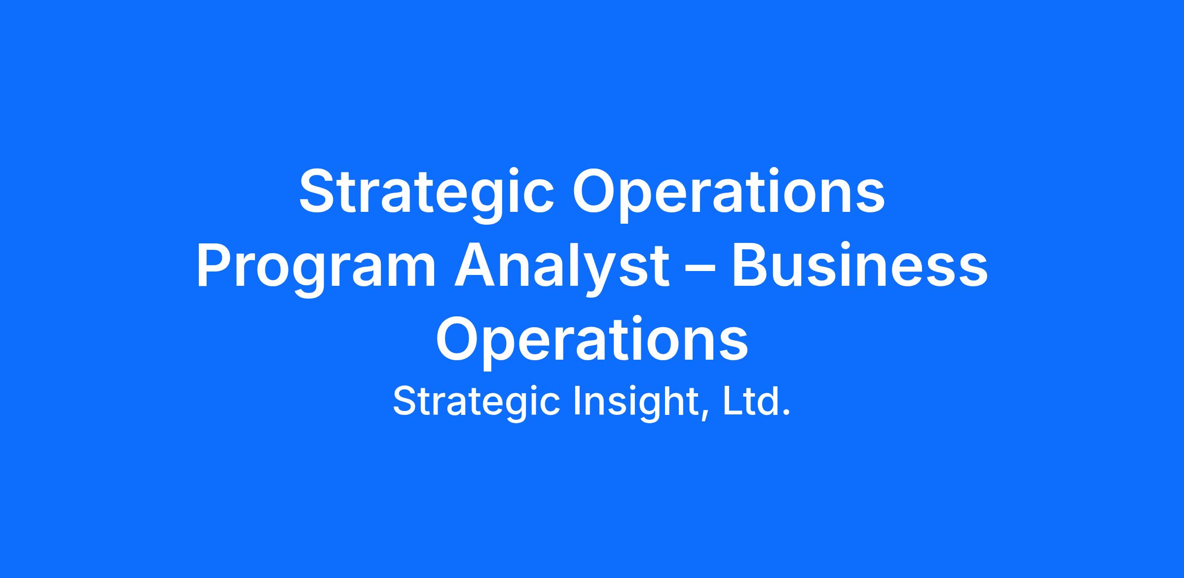 Strategic Insight, Ltd., is seeking a Strategic Operations Program Analyst – Business Operations to support the Department of the Navy's strategic and operational initiatives by evaluating business operations, improving processes, and enabling data-driven decision-making. The analyst will play a key role in assessing organizational effectiveness, identifying opportunities for improvement, and supporting leadership through actionable insights and performance analysis.