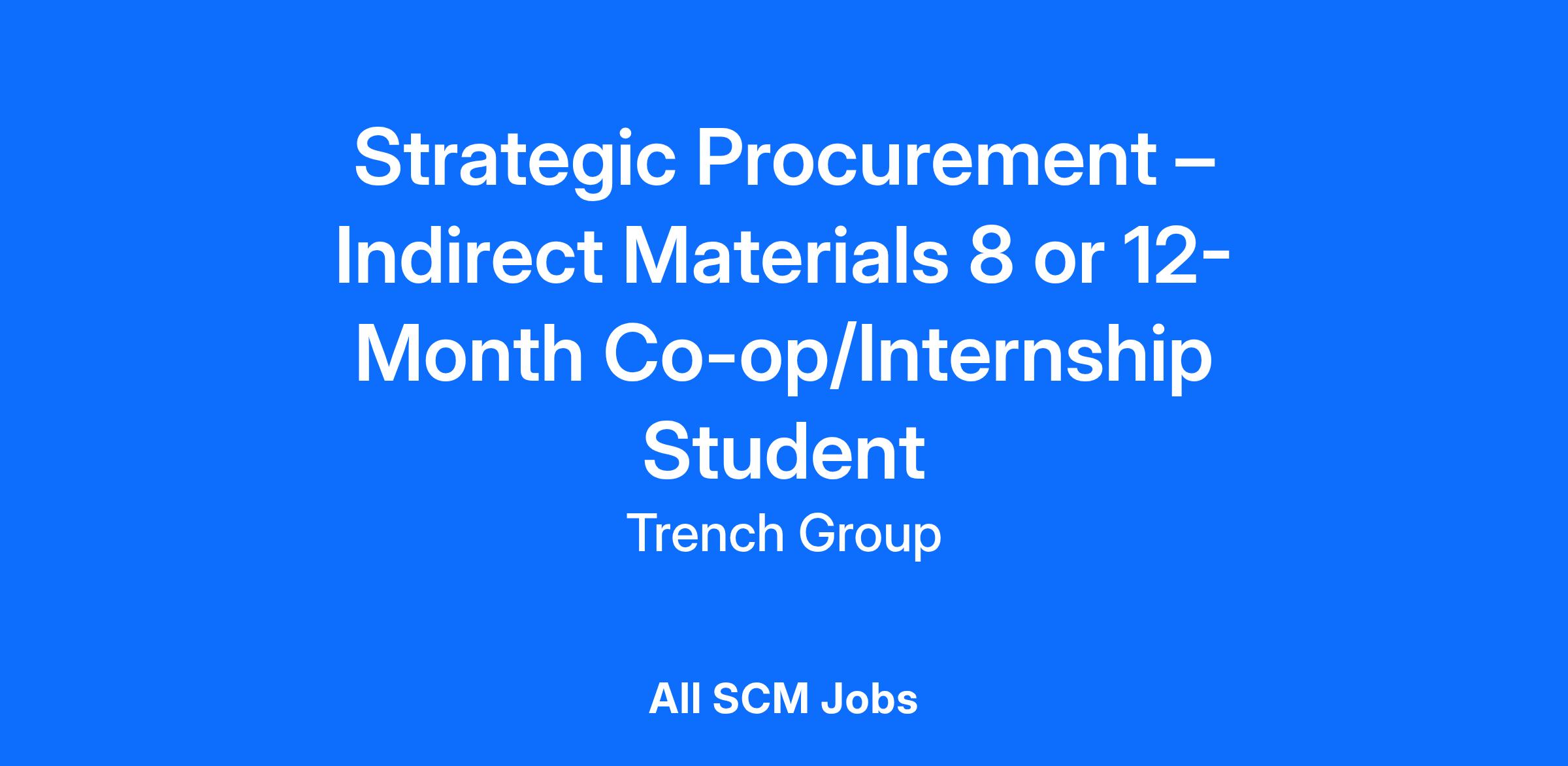 As a Co-op/Intern at Trench, you will be part of the Strategic Procurement group and responsible for Supplier Management and Strategic Supply Chain Initiatives. You will have a chance to understand the indirect supply chain of a manufacturing location and gain exposure to a wide range of supplier topics, such as pricing, negotiations, contracts, and vendor management.