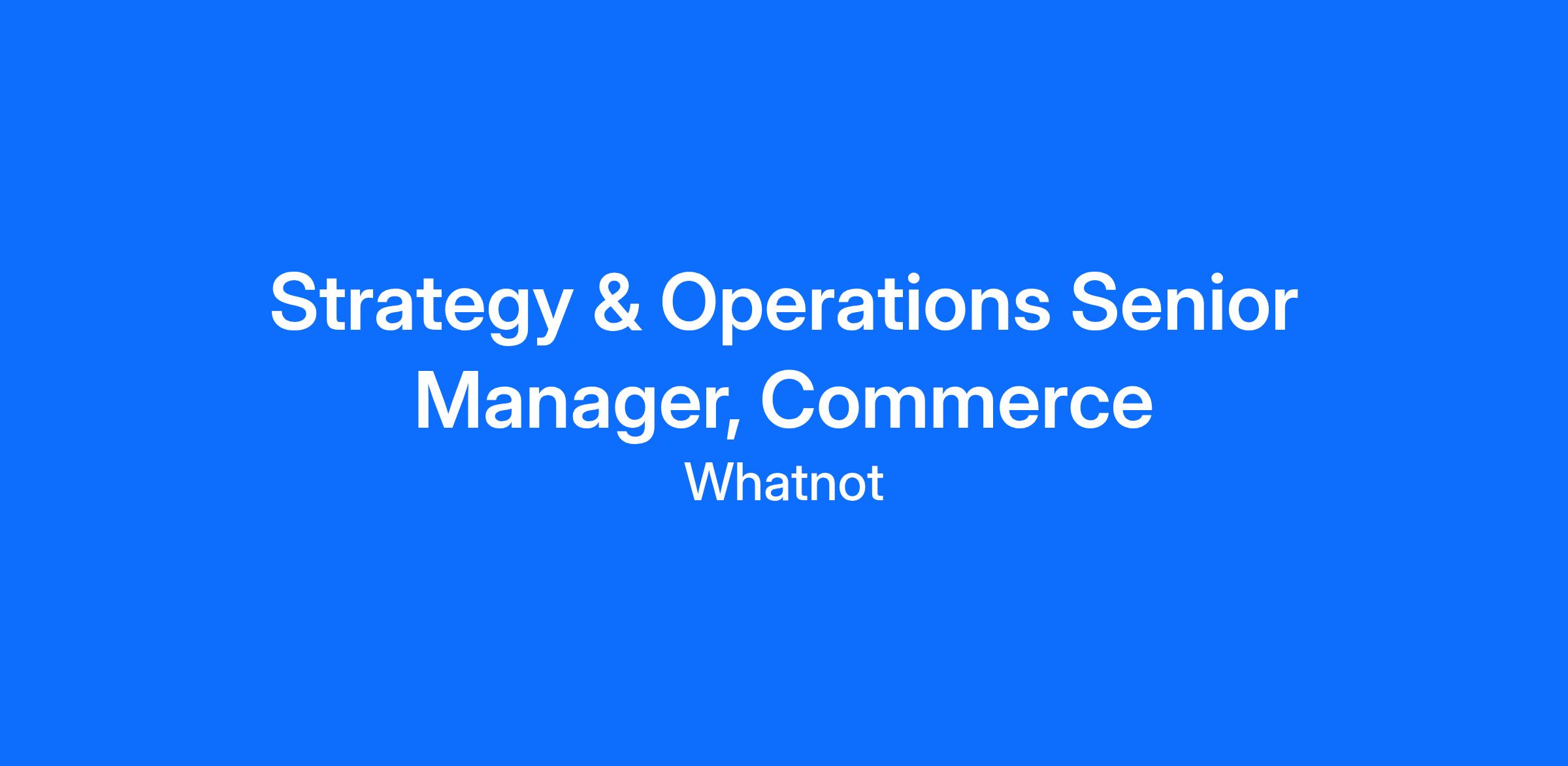 Curious about who thrives at Whatnot? Weāve found that low ego, a growth mindset, and leaning into action and high impact goes a long way here. As our next Commerce Strategy & Operations Senior Manager you should have 8+ years of experience in strategy and operations roles (eg consulting, finance, GM, Operations), plus:Ā