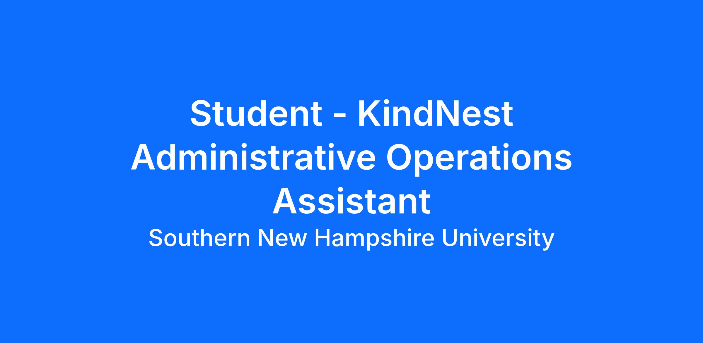 Southern New Hampshire University is seeking a student employee to fill the role of Administrative Operations Assistant for our partner organization KindNest. The Administrative Operations Assistant will assist with daily organizational and administrative functions of KindNest, a nonprofit dedicated to supporting pregnant women, new mothers, and families with young children. The assistant will help maintain records, organize program information, and support the internal systems that keep the nonprofit operating efficiently. The position provides hands-on experience in nonprofit administration, organization management, and mission-driven program coordination.