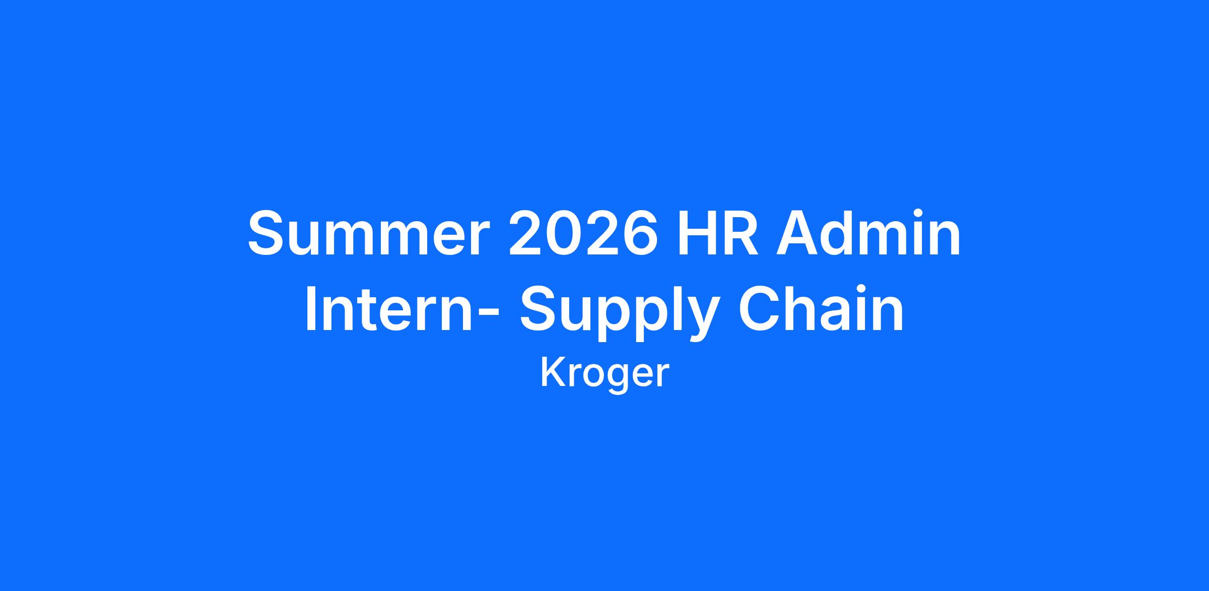 Summer 2026 HR Admin Intern- Supply Chain