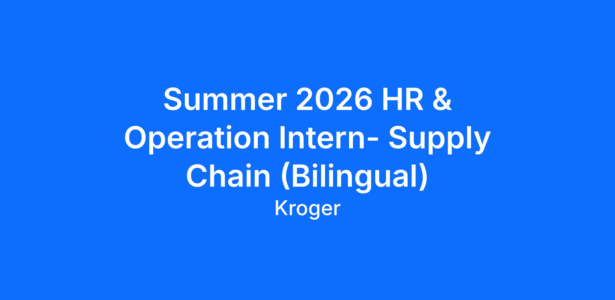 DescriptionThe Kroger Summer Internship Program is a 12 week immersive experience that offers students an opportunity to grow their careers through a variety of focused internship assignments. Rotation dates: May 18th - Aug 7th