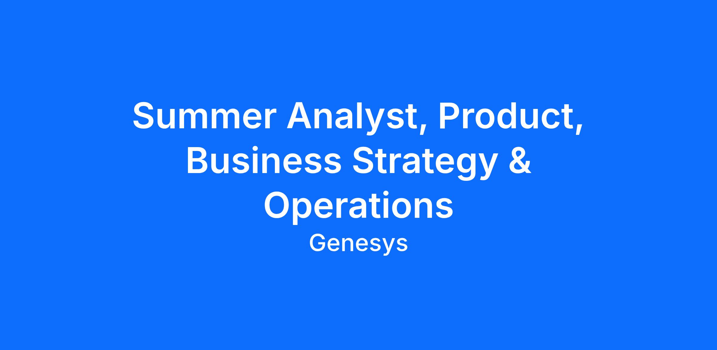 Throughout the summer, you will gain exposure to many aspects of the Genesys Cloud business, including product adoption, business health, growth opportunities, and competitive positioning. You will support strategic and operational workstreams by combining strong problem-solving, business judgment, and polished communication.