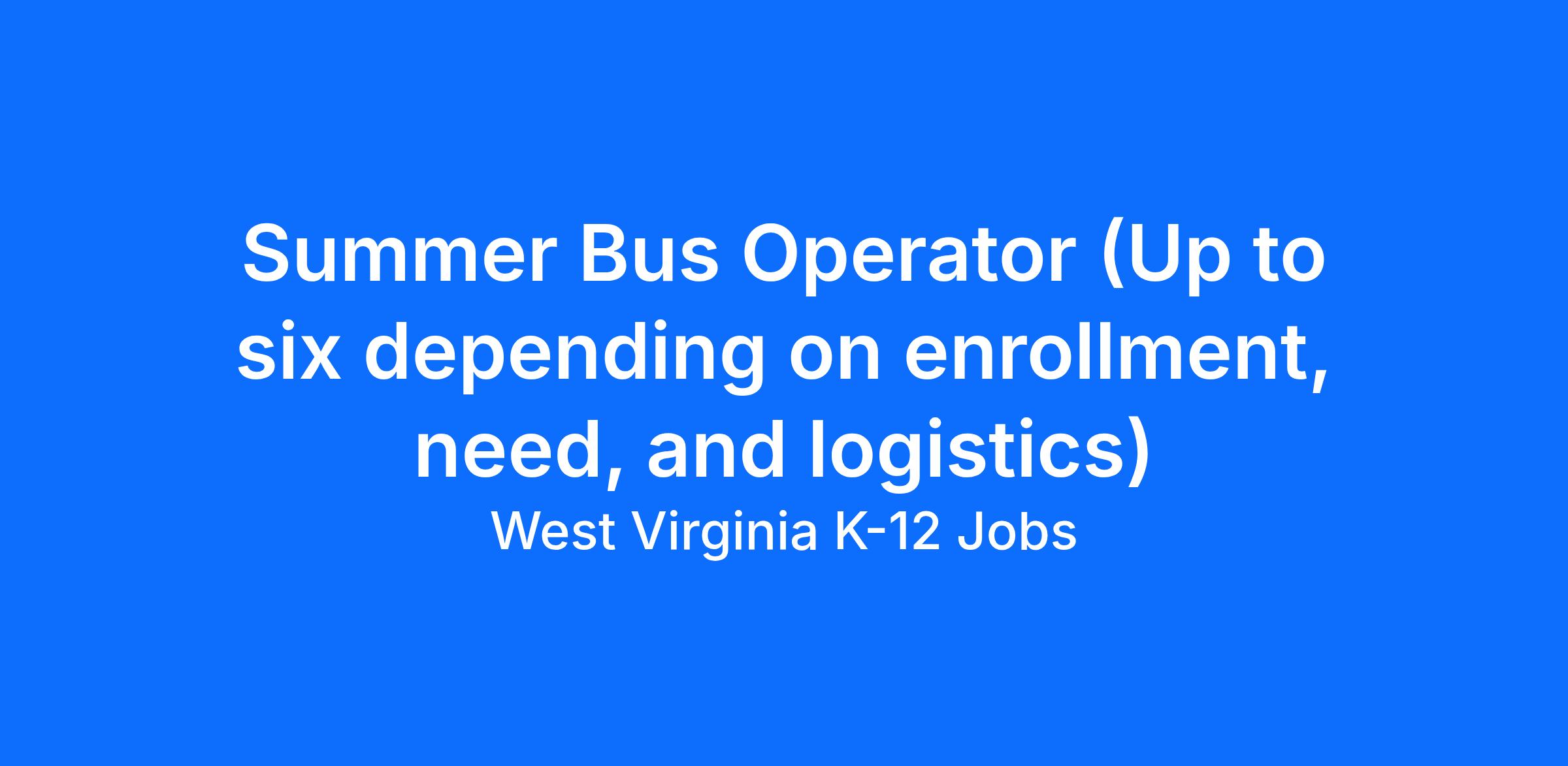 EMPLOYMENT TERM: 16 days of employment. June 22, 2026, is a planning/training day this position must report, and then Tuesdays/Wednesdays/Thursdays from June 23, 2026, through July 23, 2026. Mandatory bus training will occur June 22. Hours are approximately 6:30 am â 9:30 am and 2:00 pm â 5:00 pm to include pre-route inspection time, bus custodian care time, and county inspection time.