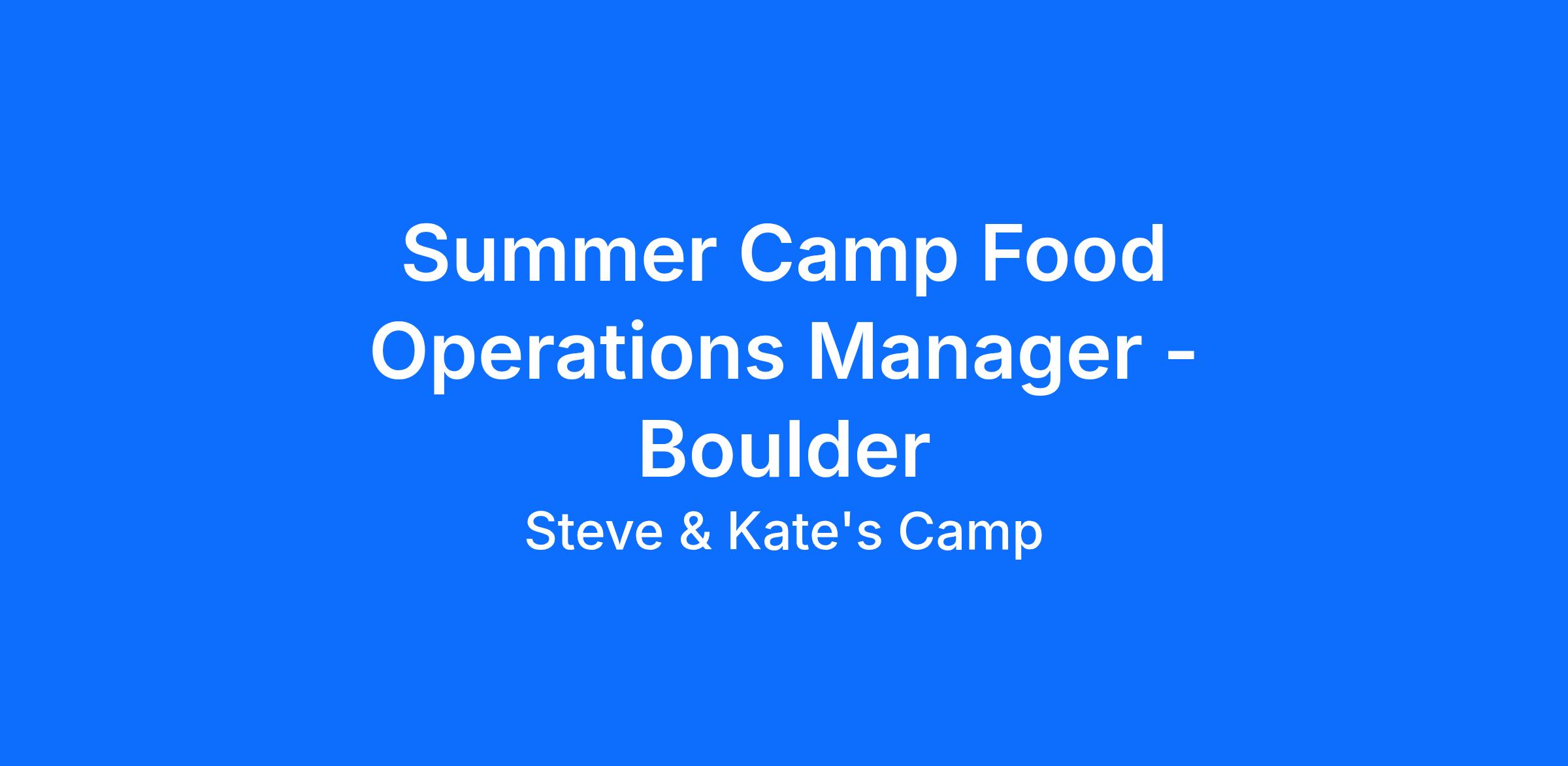 At Steve & Kate's Camp, we’re pioneers in self-directed learning, and we're looking for meticulous multitaskers with strong time-management skills to run our on-site food program. As a Food Ops staff member, you’ll sharpen your inherent organizational skills, submit food orders, and maintain our kitchen and food service items using hygienic practices, all while doing meaningful work keeping hundreds of bellies full. Given the simplicity of the Food Program, there will also be opportunities to interact with campers, collaborate with interesting coworkers, and help with fun around camp. You won’t be making meals (just preparing and serving), so there’s no culinary experience required – it’s totally fine if you don’t own one of those silly chef’s hats.