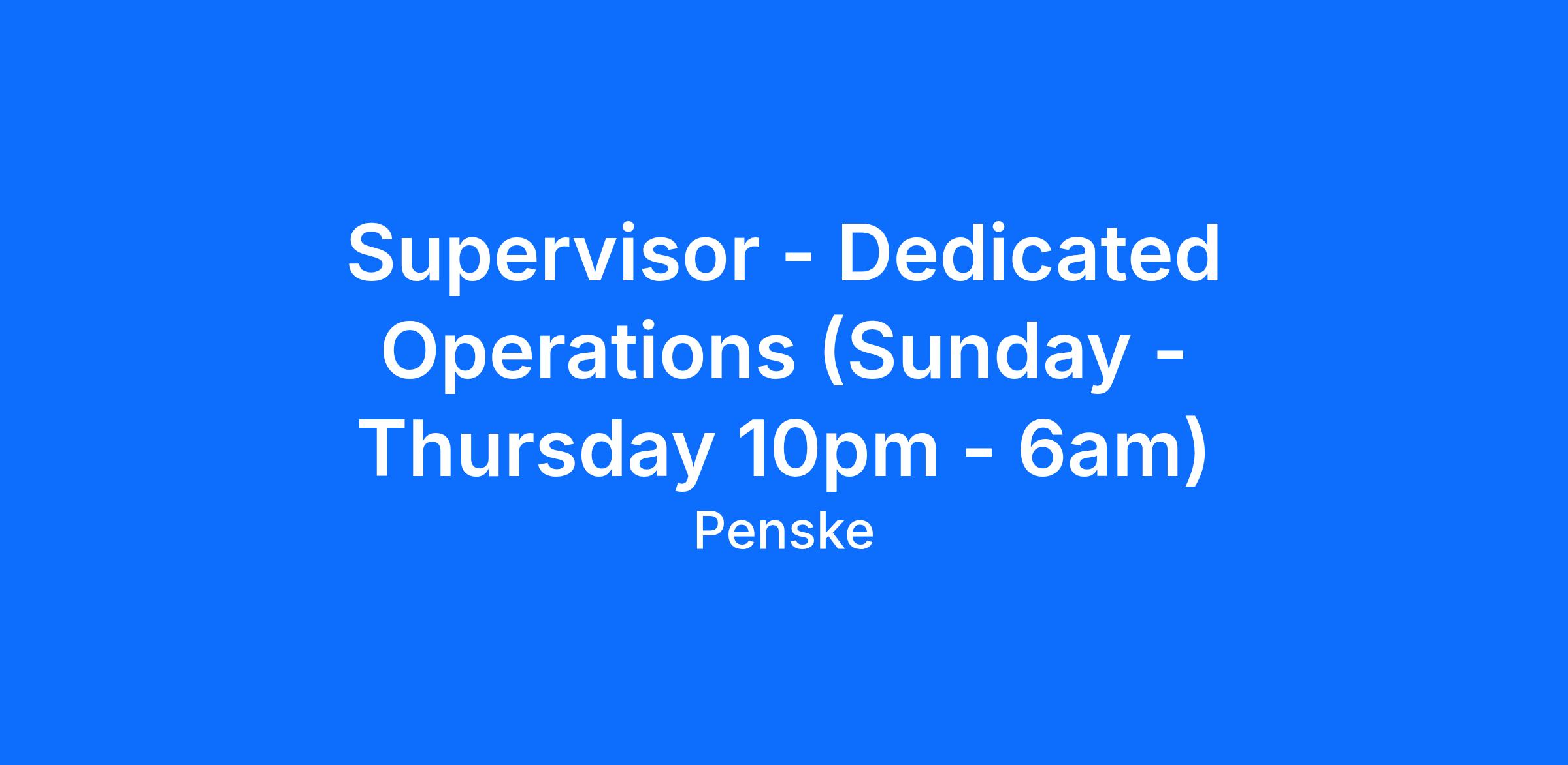 This position is for EPES Transport, LLC., a division of Penske Logistics, based in Greensboro, North Carolina. The primary purpose of the Dedicated Operations Supervisor role is manage the day-to-day operation of assigned Dedicated Account(s), ensuring that Safety, Customer, and Driver Goals are met or exceeded. Driving profitability through contract compliance, expense mitigation, and business growth.