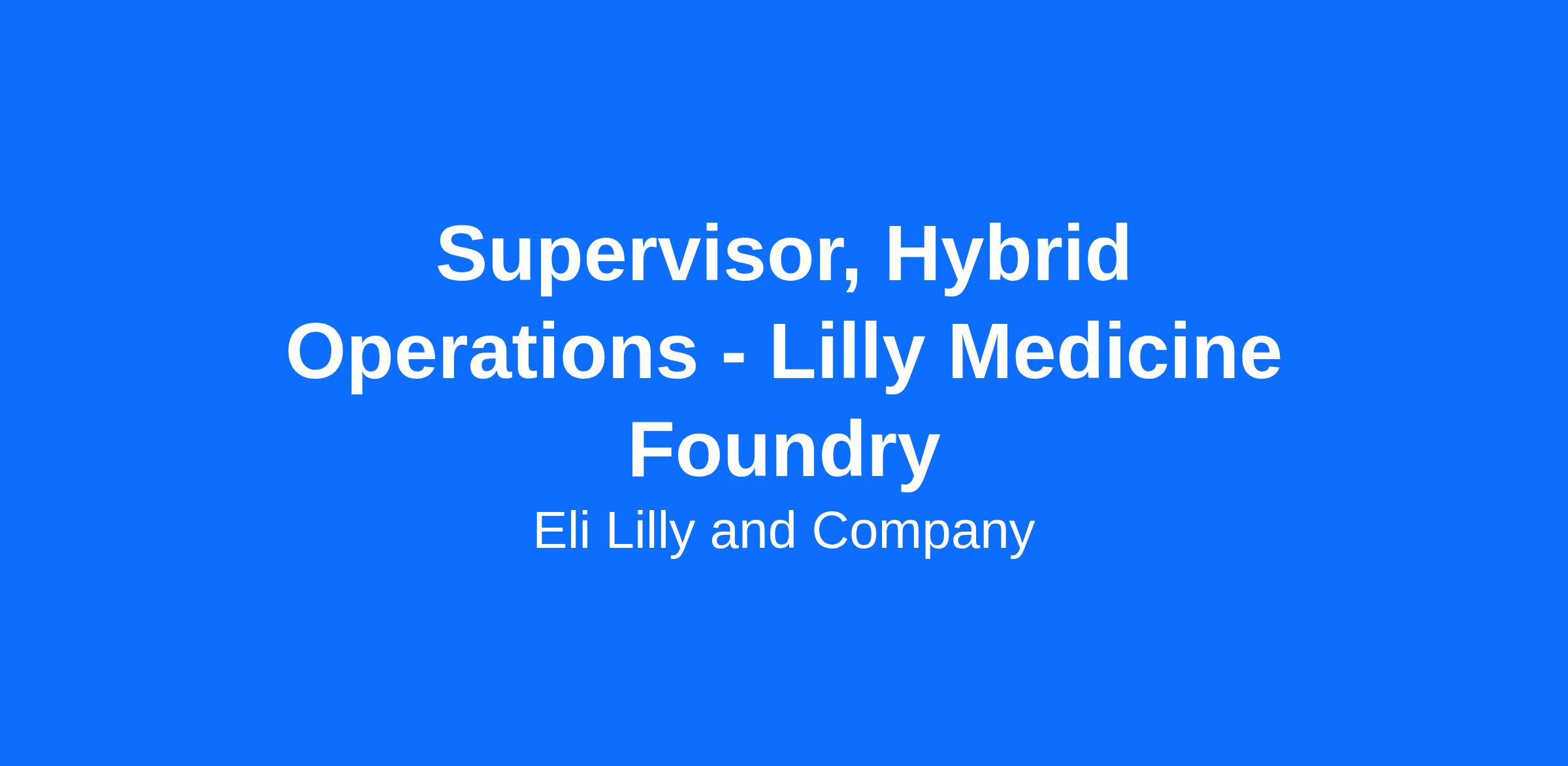 - Position Location: US: Lebanon IN Lilly Medicine Foundry (LMF), initial location in Indianapolis, IN during pre-startup phase