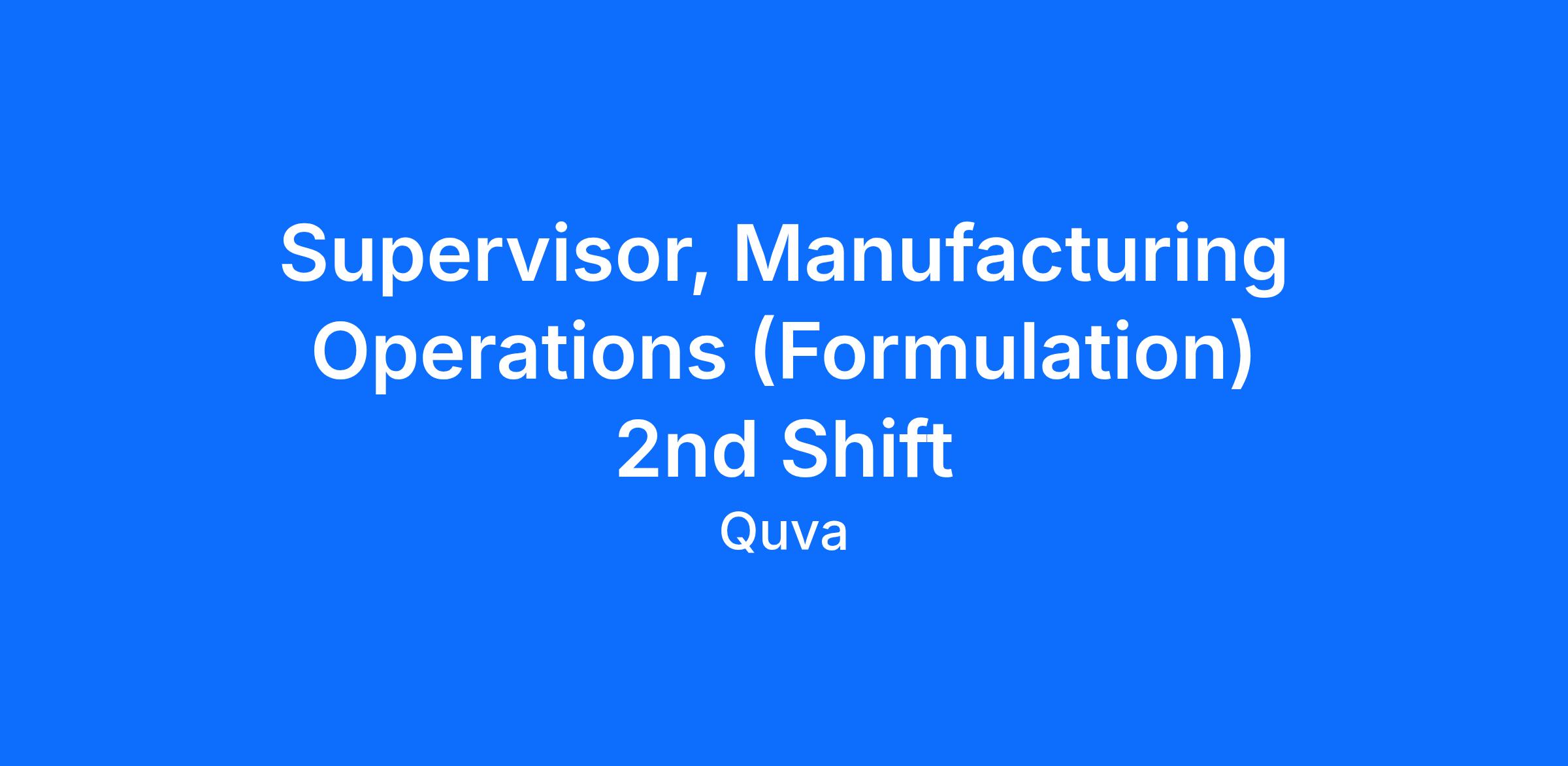 Our Most Successful Supervisor, Manufacturing Operations (Formulation):