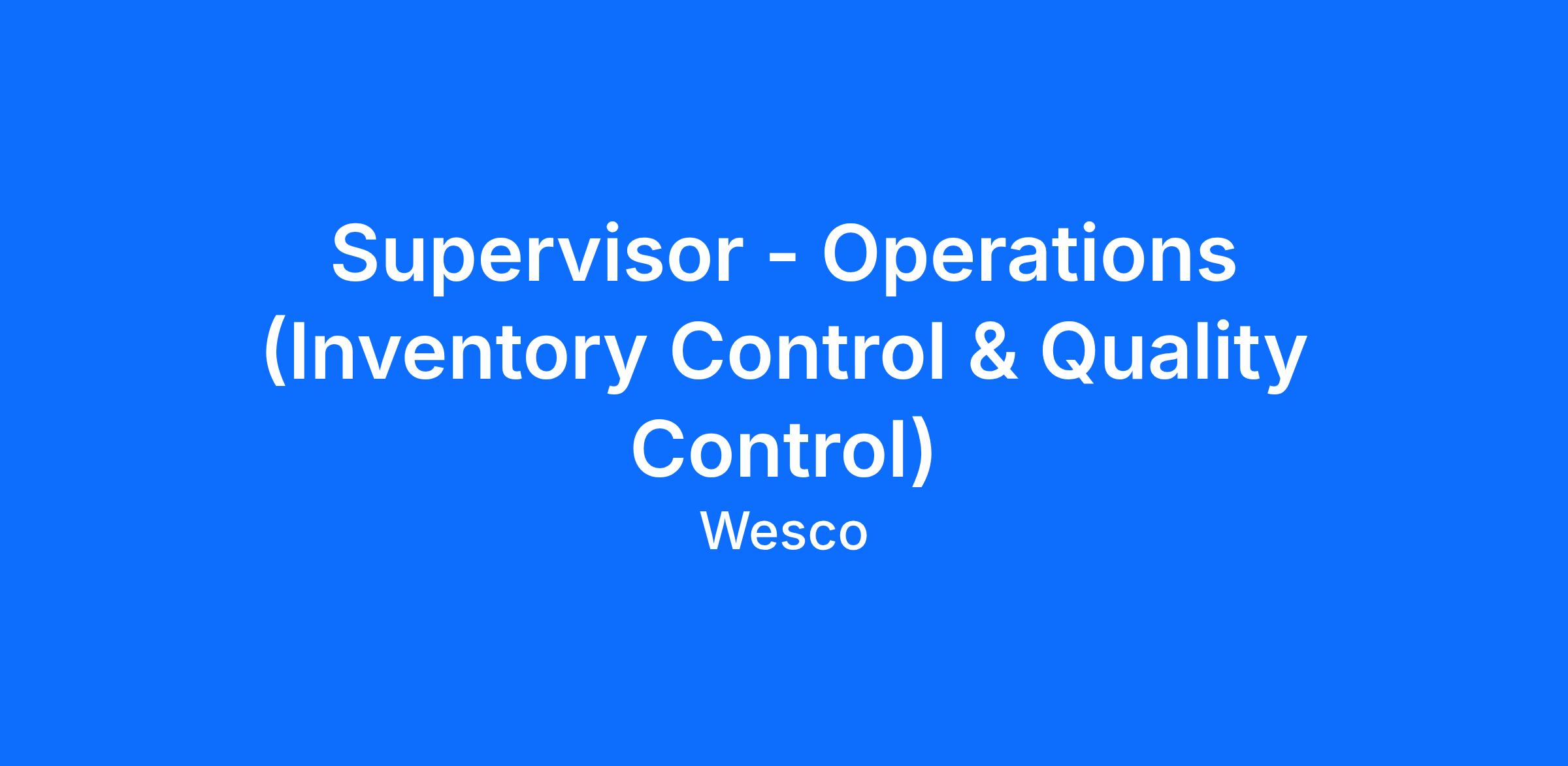 DescriptionAs the Supervisor - Operations (Inventory Control & Quality Control), you will supervise one or more departments within a warehouse operation including receiving, picking, packing, shipping, wire cutting, light assembly, as well as housekeeping of the warehouse. You will report directly to a Manager or Senior Manager Operations. You will train, coach and council associates, and can have at least 2 or more direct reports. You will comply with operational, audit, safety, and all other company policies. You will focus on meeting customer requirements. You will contribute to the development of processes and procedures.