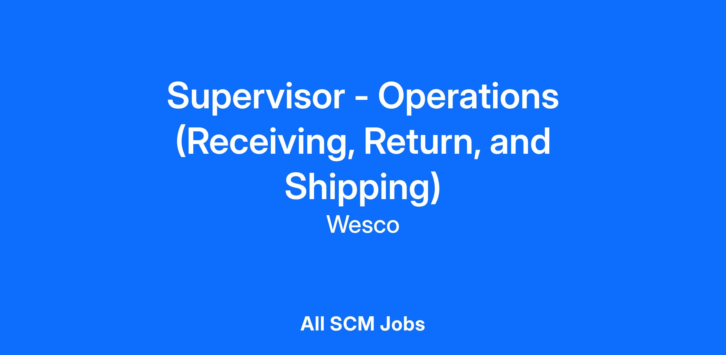 DescriptionAs the Supervisor - Operations, you will supervise one or more departments within a warehouse operation including receiving, picking, packing, shipping, wire cutting, light assembly, as well as housekeeping of the warehouse. You will report directly to a Manager or Senior Manager Operations. You will train, coach and council associates, and can have at least 2 or more direct reports. You will comply with operational, audit, safety, and all other company policies. You will focus on meeting customer requirements. You will contribute to the development of processes and procedures.