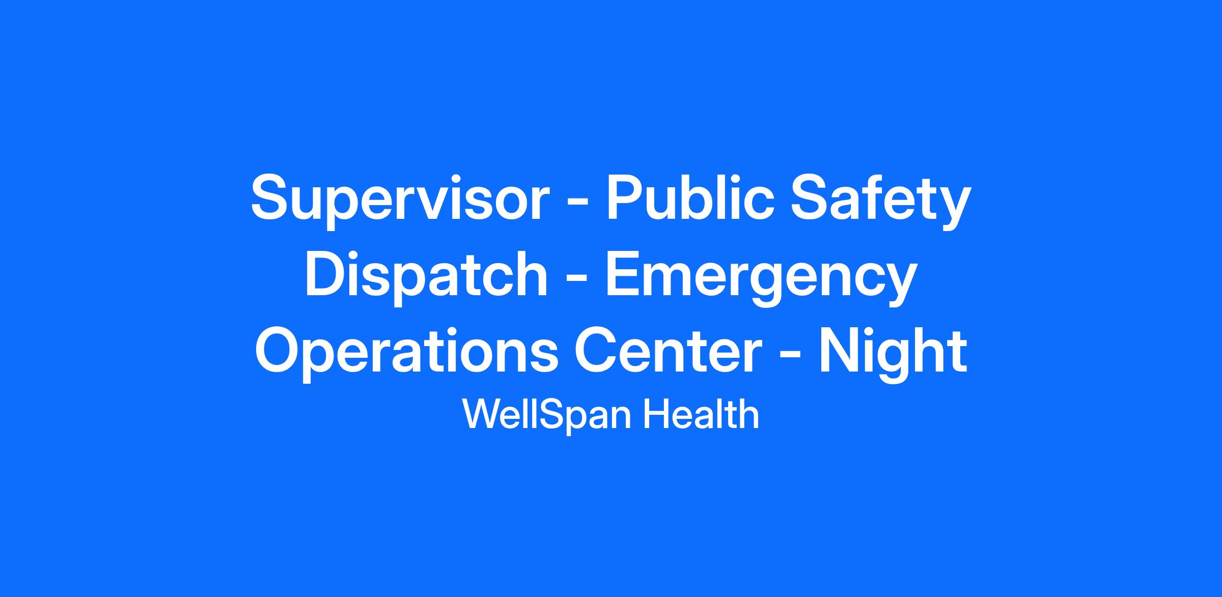 Provides on-site leadership for the Public Safety Operations Center, directing real-time monitoring, dispatch, and mass-communication activities that protect patients, visitors, workforce members, and property across all WellSpan locations. Guides technicians, maintains situational-awareness technology, and ensures rapid coordination with internal public-safety teams and external emergency-response agencies.
