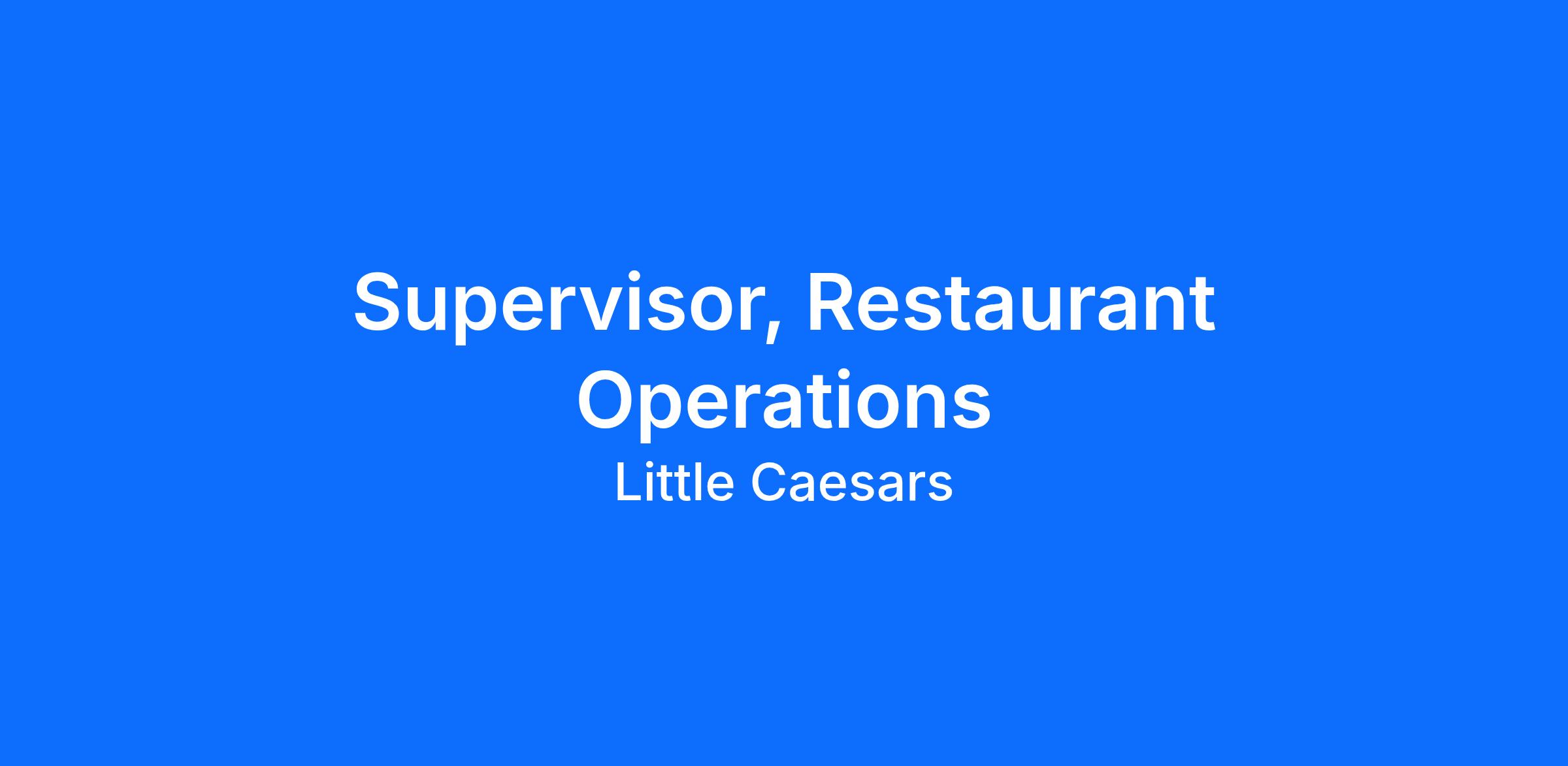 The Area Supervisor is responsible for the total operation of 5 or more restaurants and will be held accountable for fulfilling each of their job requirements. Because the Area Supervisor is responsible for multiple locations, reliable transportation must be available at all times. The Area Supervisor will be required to carry a pager and respond to any problems with a sense of urgency. The Area Supervisor must display leadership qualities in addition to management skills, and must abide by all state and federal laws OSHA and EEOC requirements, as well as practice and enforce all Little Caesars policies and procedures.