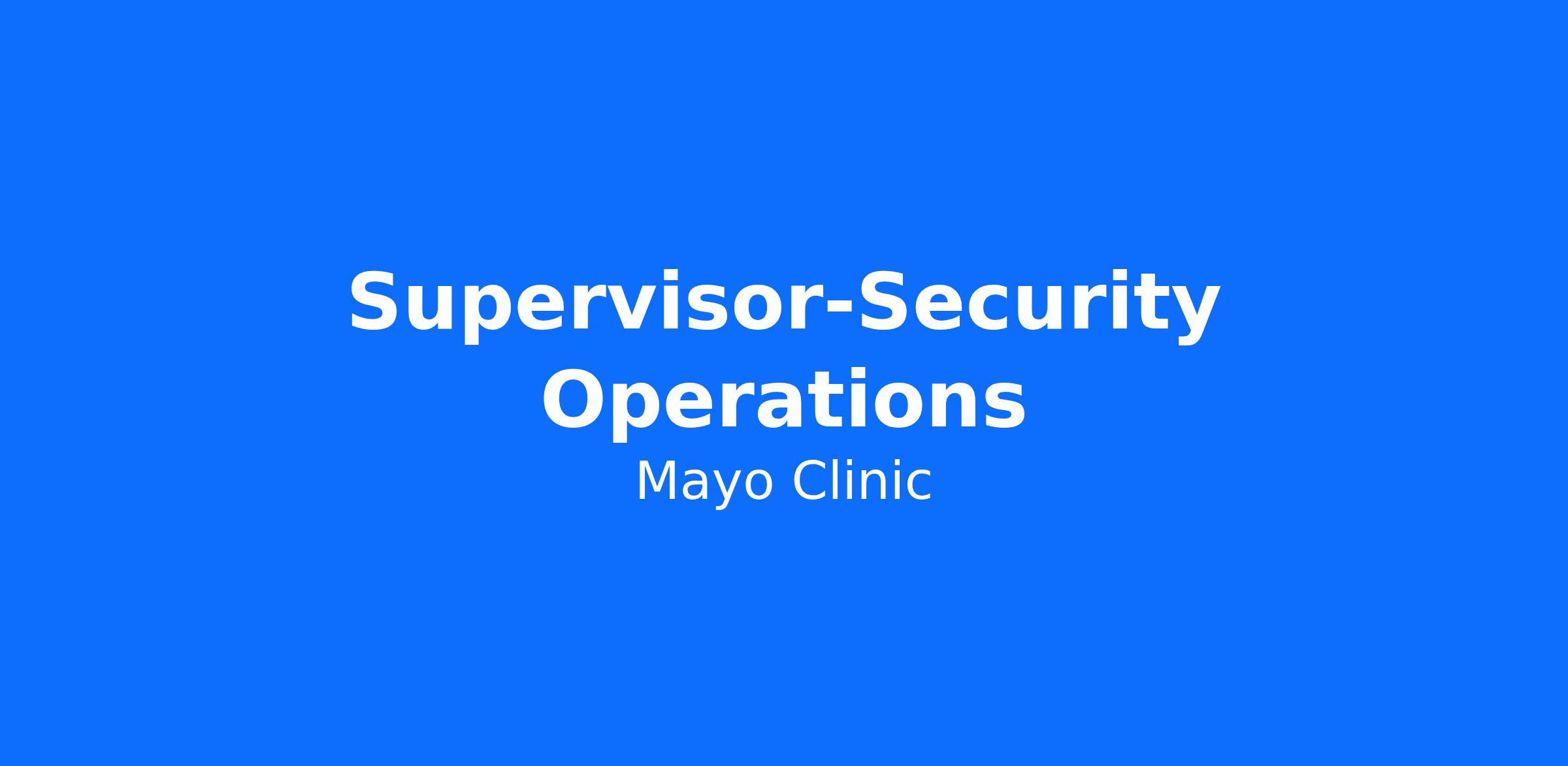 Mayo Clinic Global Security Supervisors will oversee the activities and supervision of the security officers by assisting with problems, providing direction, determining appropriate action, and disseminating information.