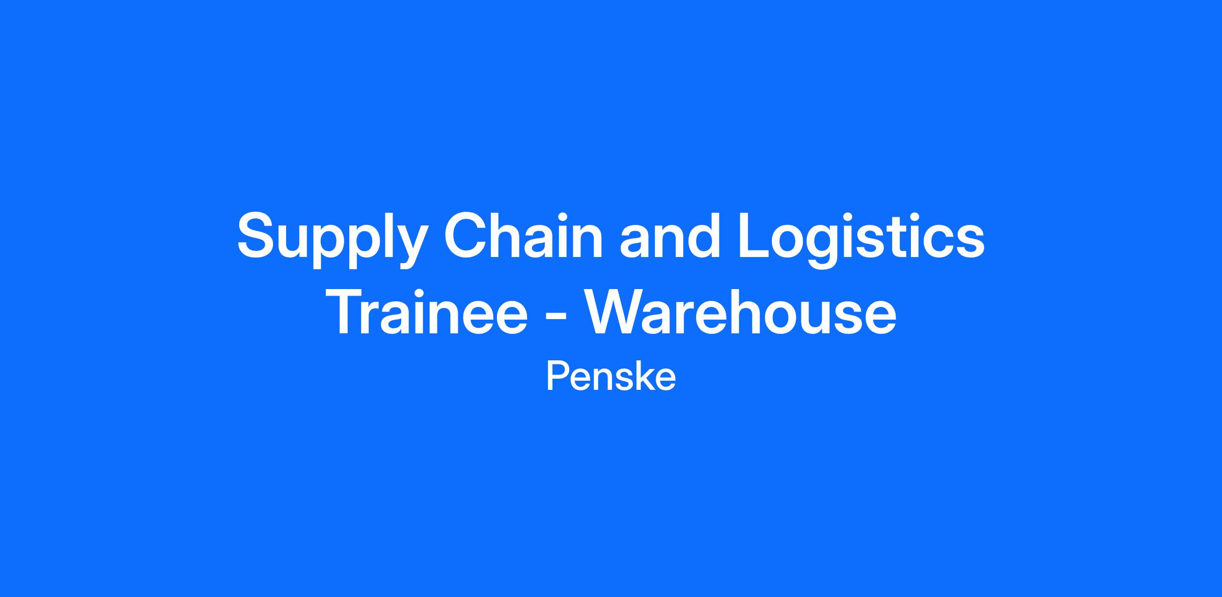 Supply Chain and Logistics Trainee - Warehouse