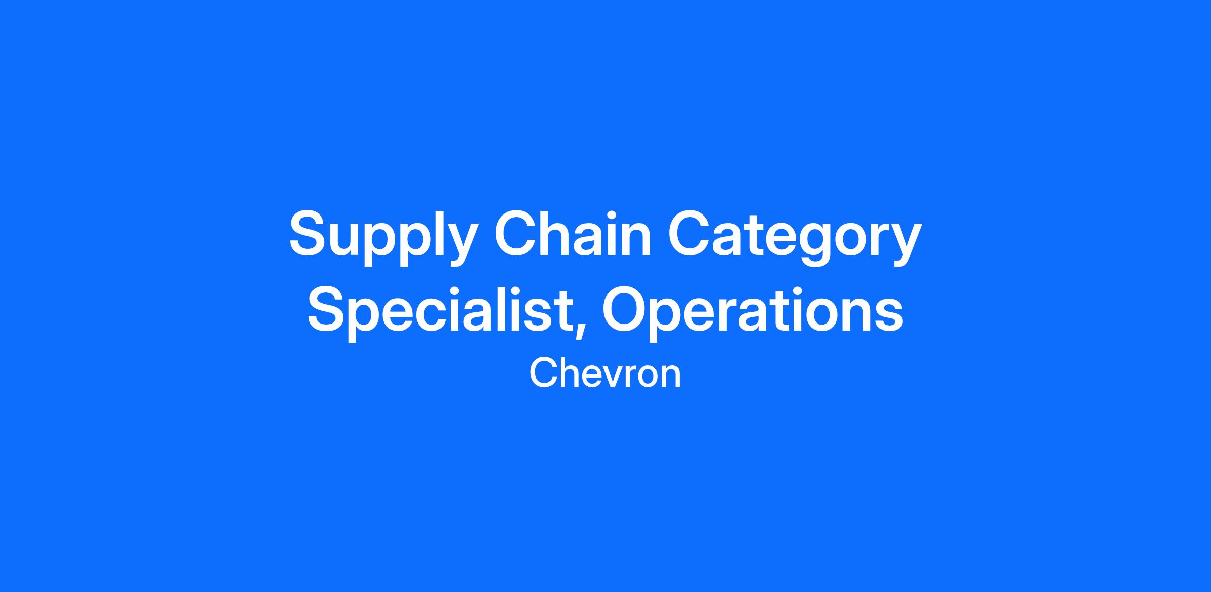 1Chevron is accepting online applications for the position Supply Chain Category Specialist, Operations through January 28th at 11:59 p.m.